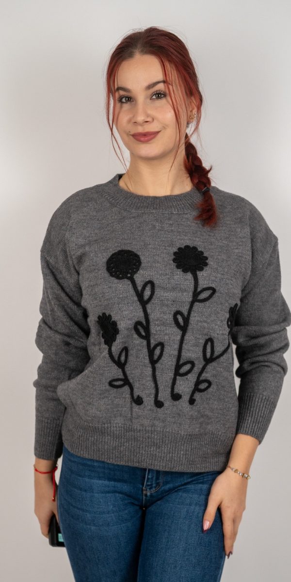 kolekcija10% POPUSTA, BOŽIĆNI POPUSTI, Izdvojeno, Majice, Majice fino meko pletivo, Nova kolekcija, Pletene majice, Pletivo, Plus Size, ŽeneŽenska oversized mekana pletena majica s 3D cvjetnim aplikacijama i ukrasnim džepovima – 8363