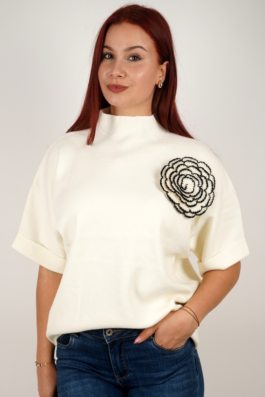 kolekcija10% POPUSTA, BOŽIĆNI POPUSTI, Izdvojeno, Majice, Majice fino meko pletivo, Nova kolekcija, Pletene majice, Pletivo, Plus Size, ŽeneŽenska majica s ukrasnim cvijetom i kratkim rukavima – fino meko pletivo – u veličinama – 3978