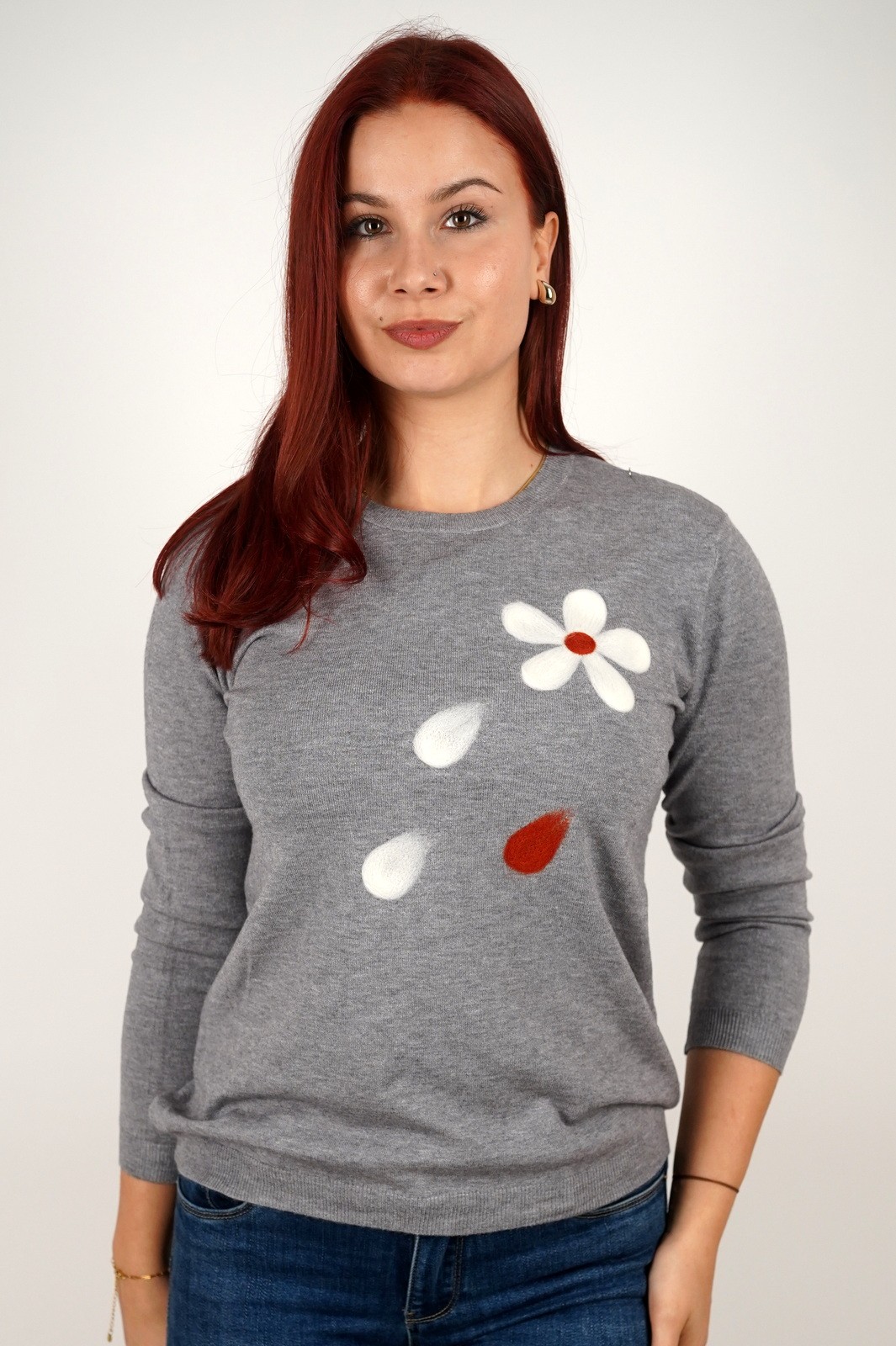 kolekcija10% POPUSTA, BOŽIĆNI POPUSTI, Izdvojeno, Majice, Majice fino meko pletivo, Nova kolekcija, Pletene majice, Pletivo, Plus Size, ŽeneŽenska majica od mekog pletiva s aplikacijom cvijeta – u veličinama D7625