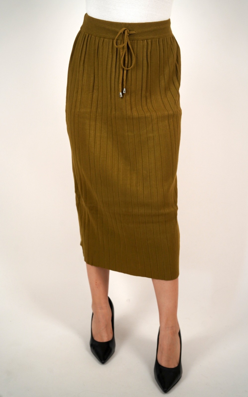 kolekcijaŽenska pletena rebrasta midi suknja s vezicom u struku – u veličinama – LV007