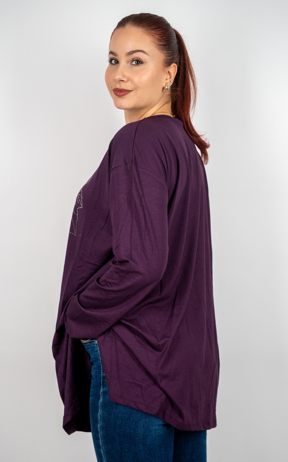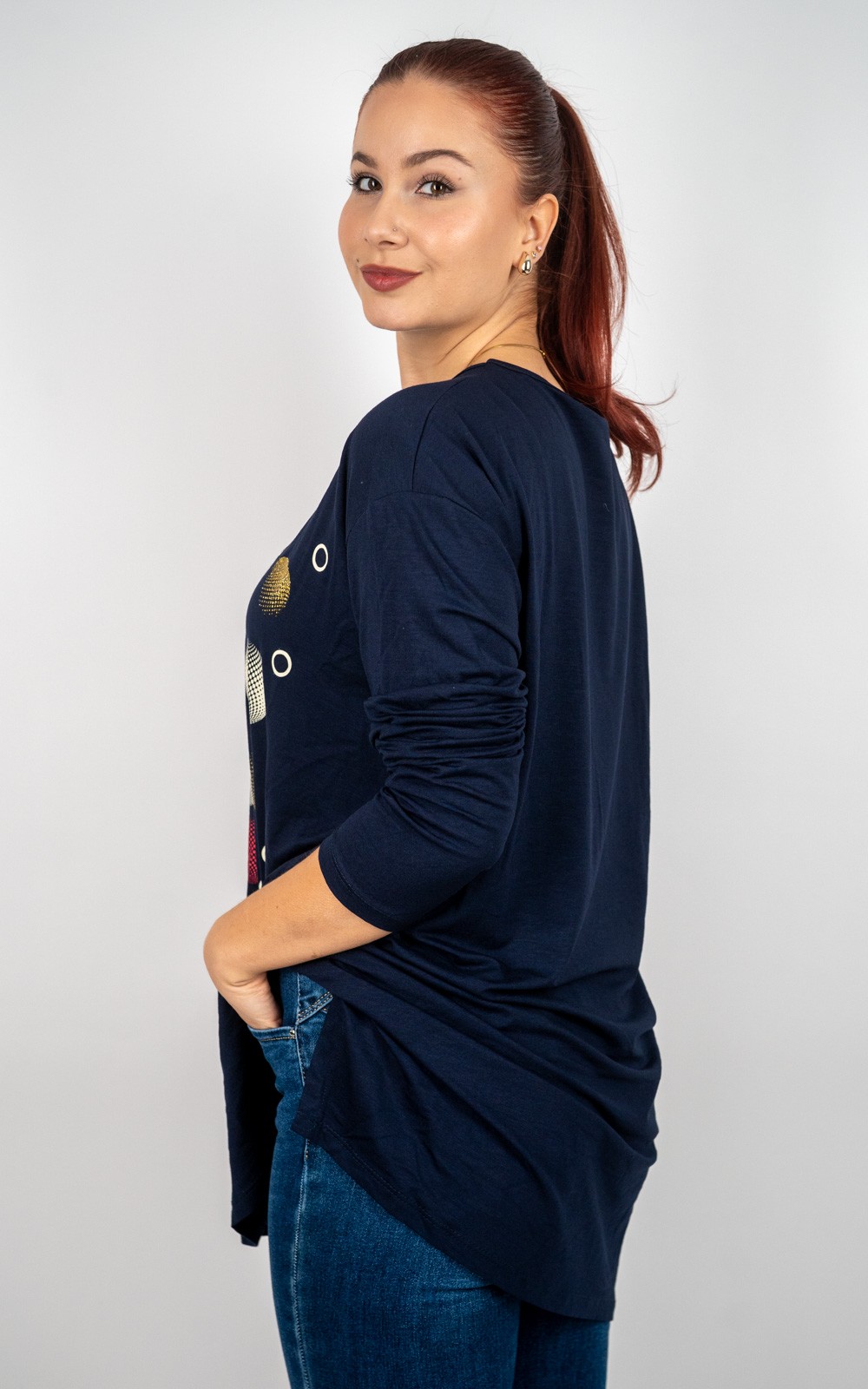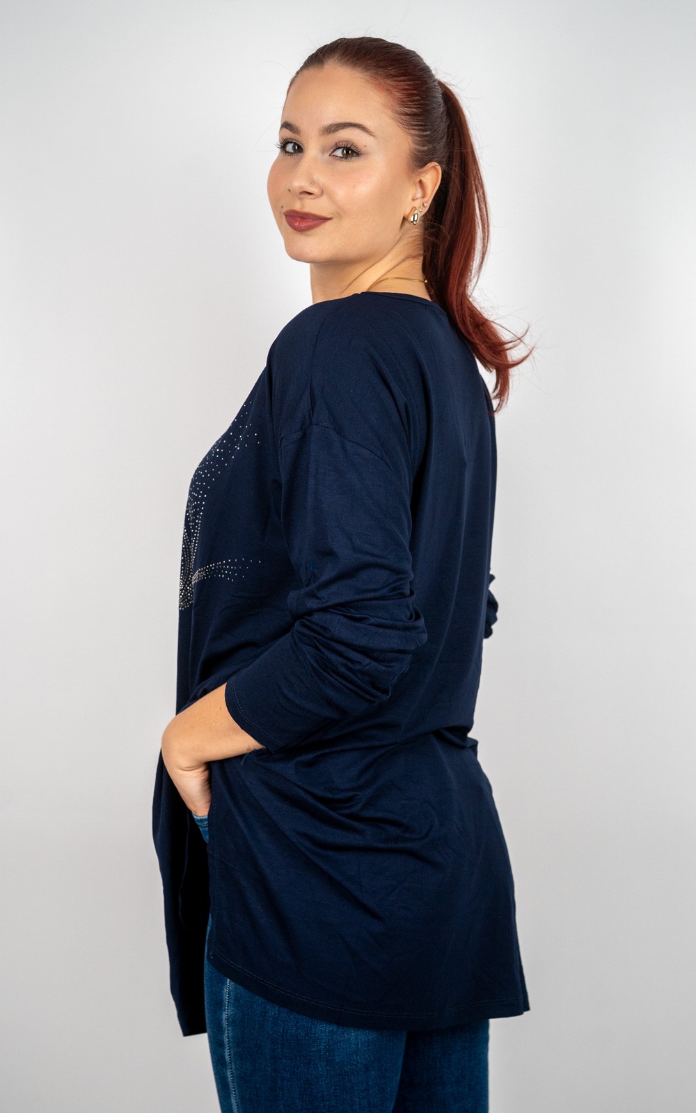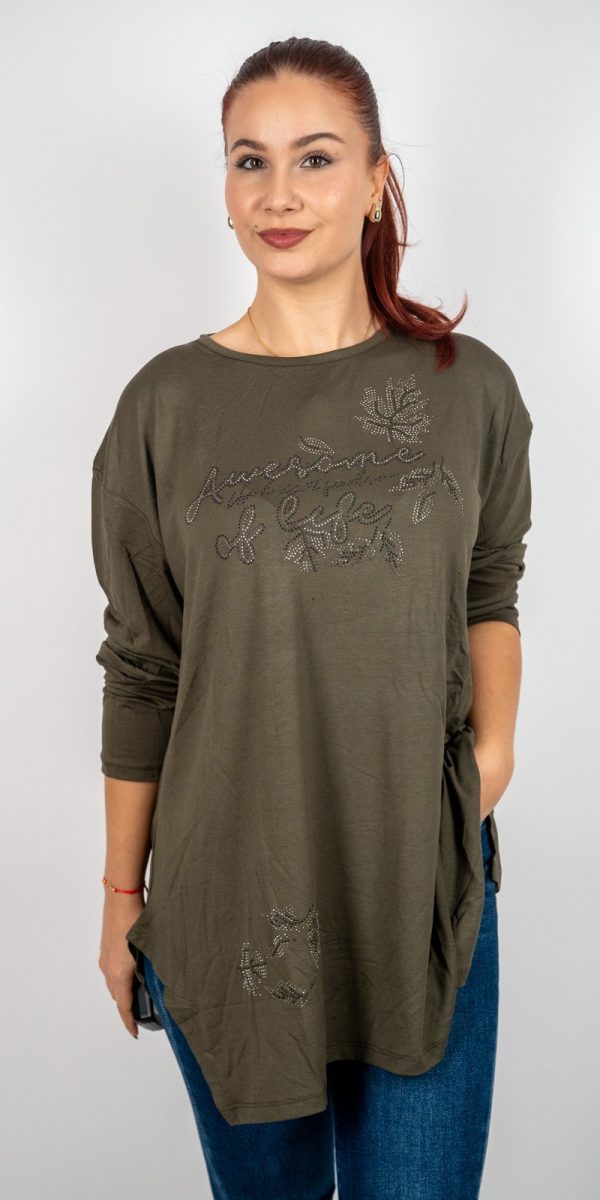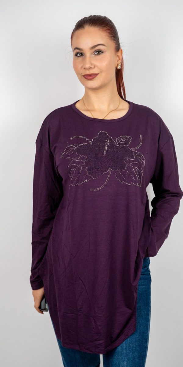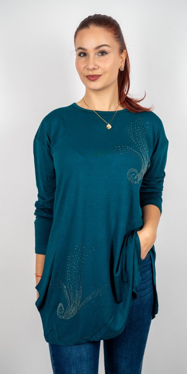 Ženska oversized viskozna tunika s ukrasnim cirkonima – 45011598