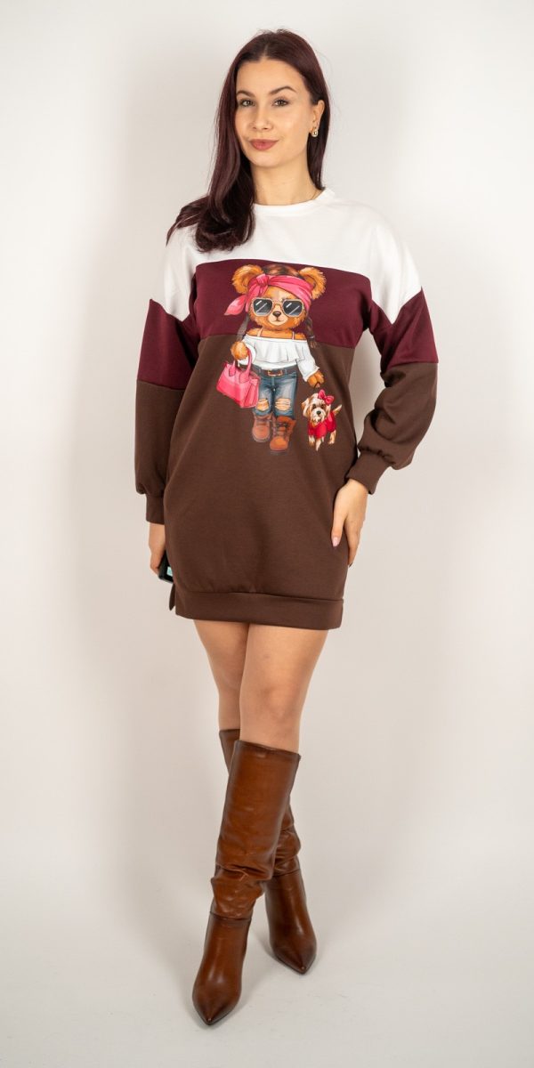 Ženska duksa/haljina s trodijelnim dizajnom i printom – Pink Style Duo