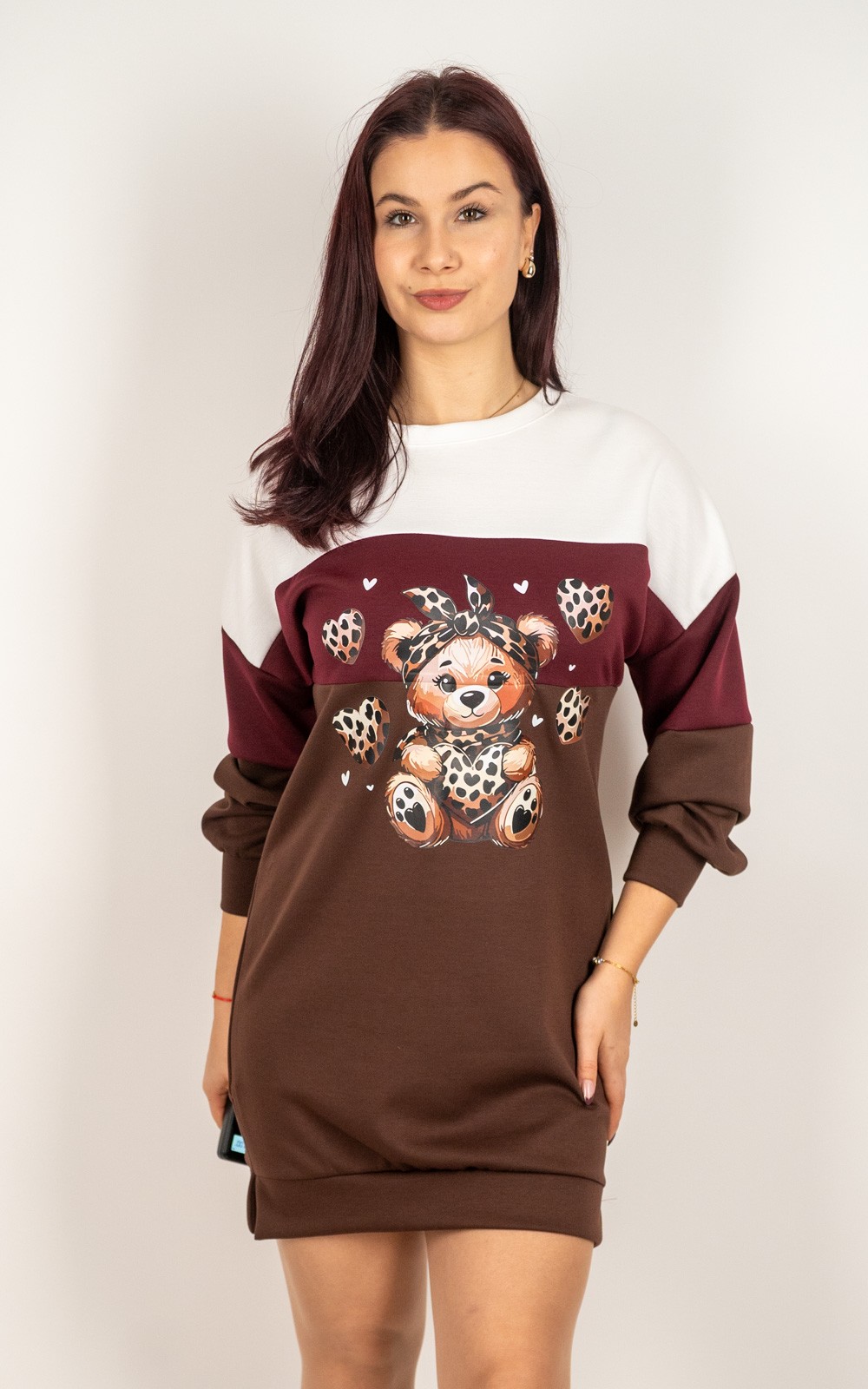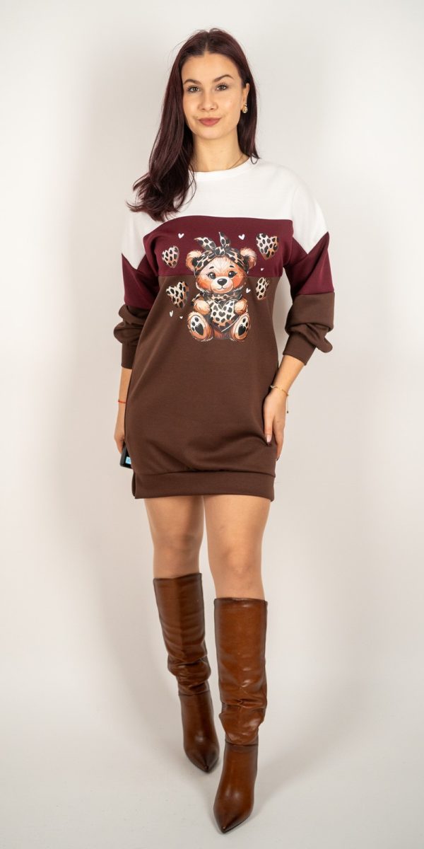 Ženska duksa/haljina s trodijelnim dizajnom i printom – Leopard Heart Teddy