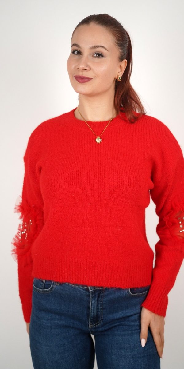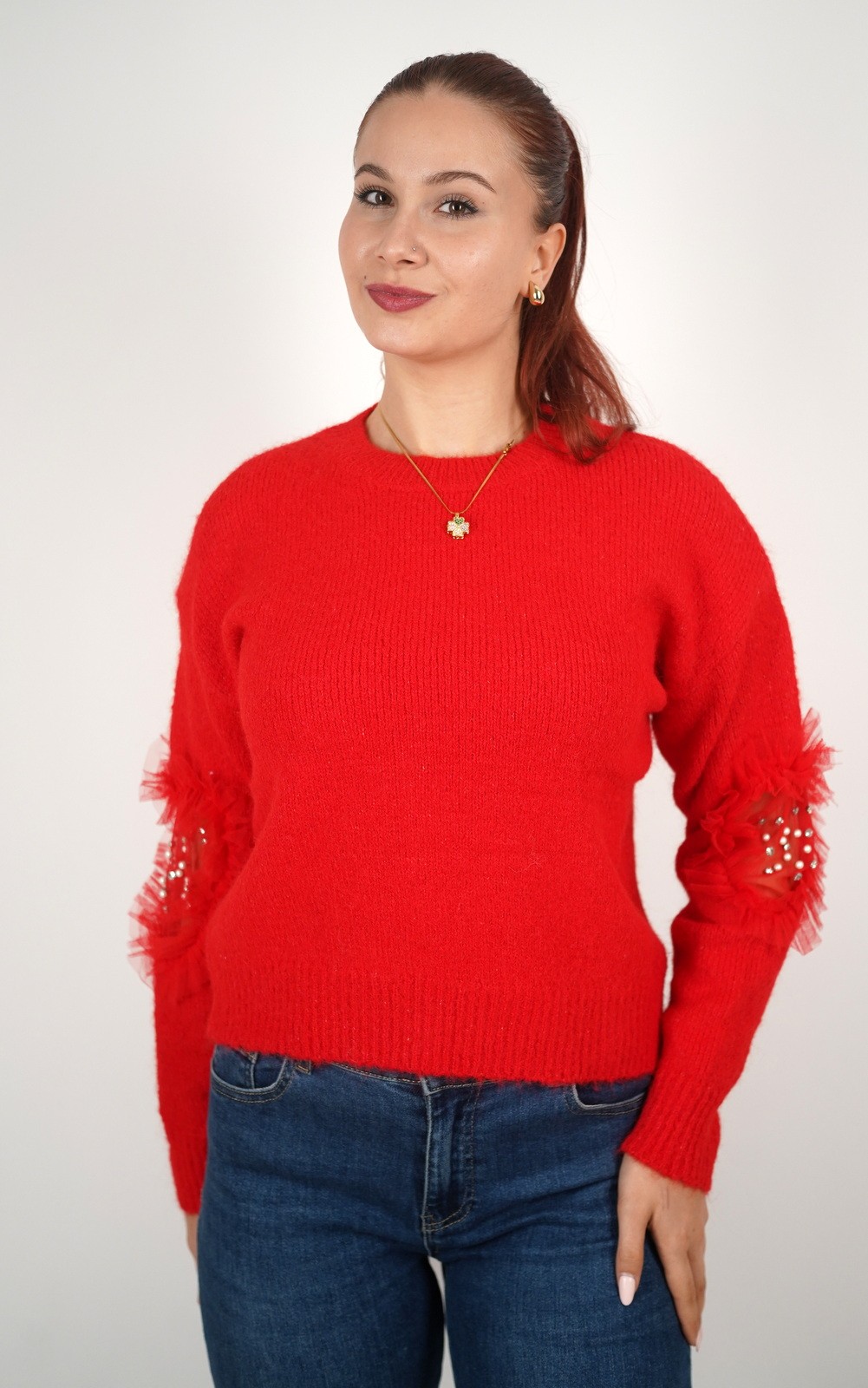 kolekcija10% POPUSTA, BOŽIĆNI POPUSTI, Izdvojeno, Majice, Nova kolekcija, Pletene majice, Pletivo, Plus Size, ŽeneŽenski pleteni pulover s ukrasnim detaljima na rukavima – 12228