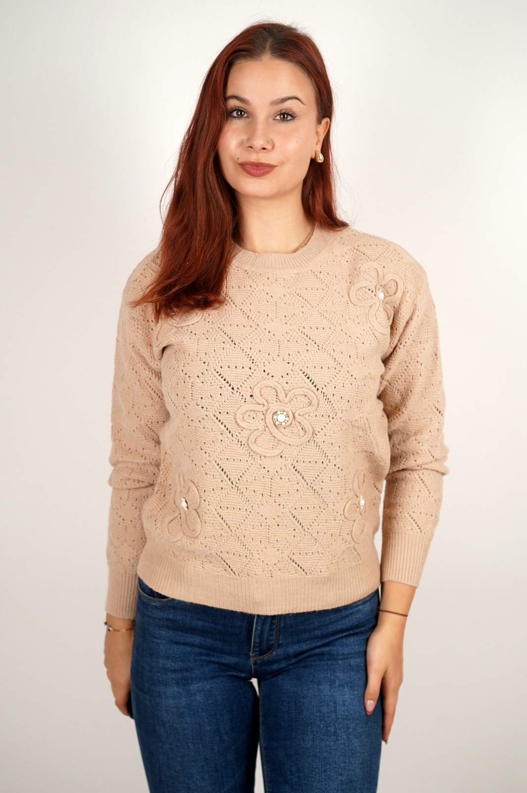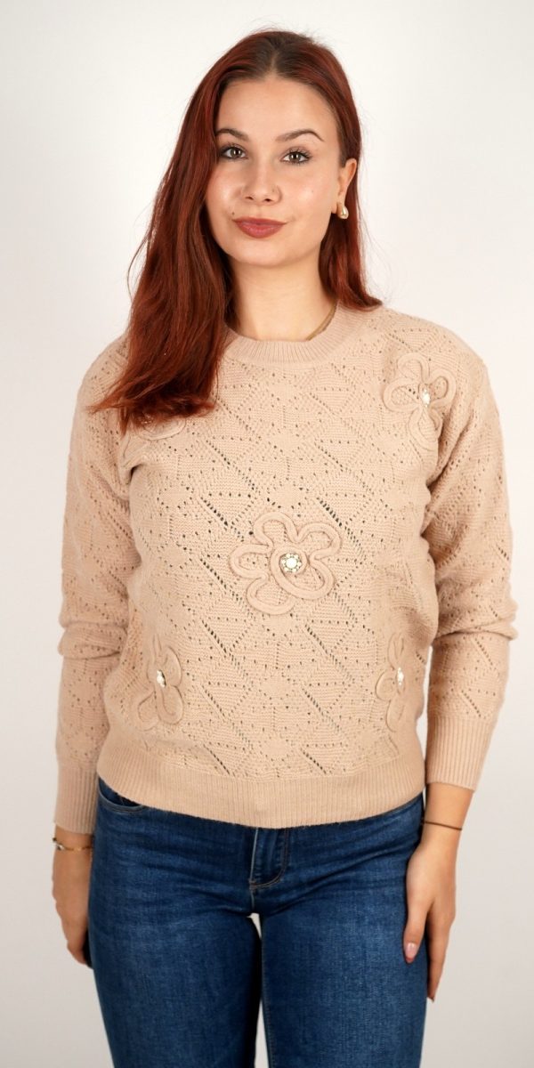 kolekcija10% POPUSTA, BOŽIĆNI POPUSTI, Izdvojeno, Majice, Majice fino meko pletivo, Nova kolekcija, Pletene majice, Pletivo, Plus Size, ŽeneŽenska pleteni pulover sa cvjetnim detaljima i biserčićima – u veličinama – 7817#