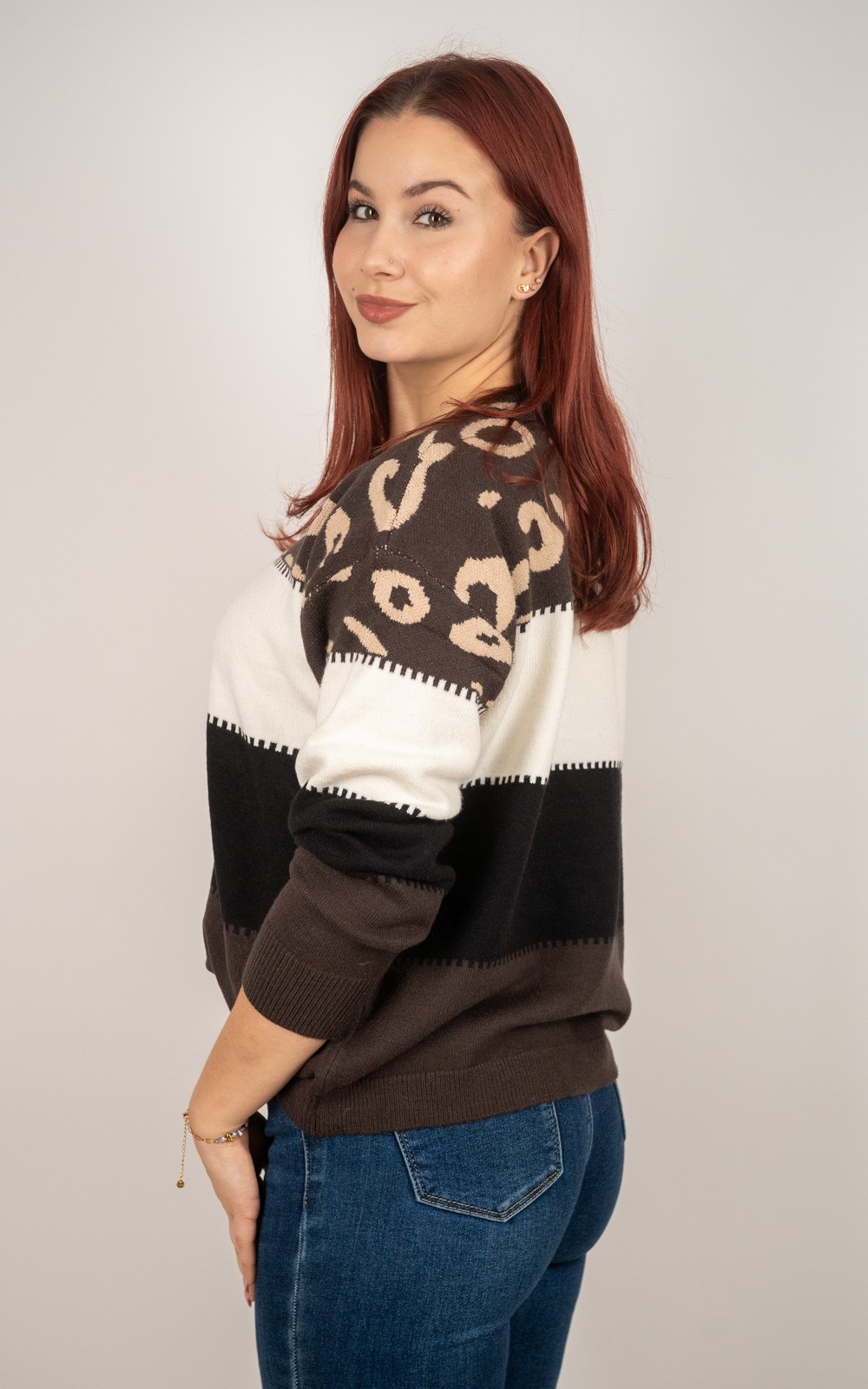 kolekcijaŽenski pleteni pulover s animal detaljem i prugama – u veličinama – 85735