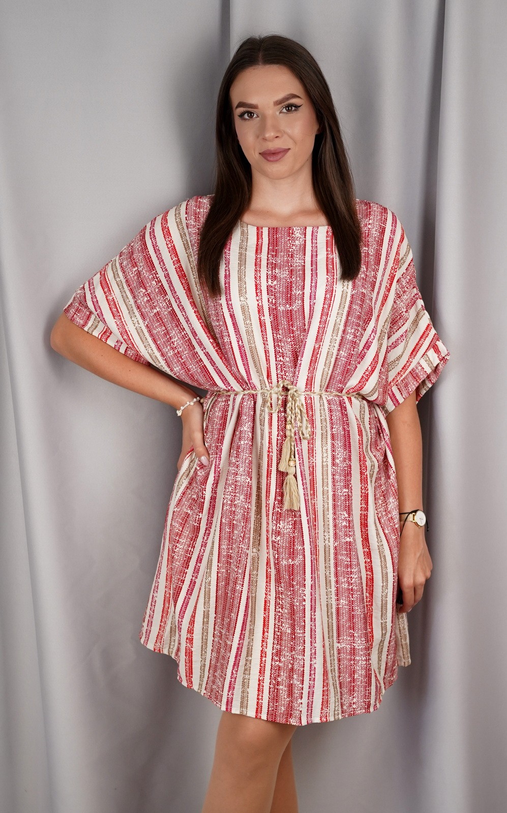Ženska lagana ljetna haljina s prugama i vezicom u struku – 11068