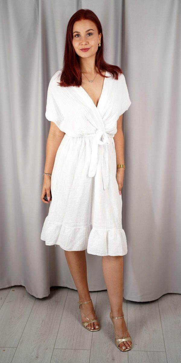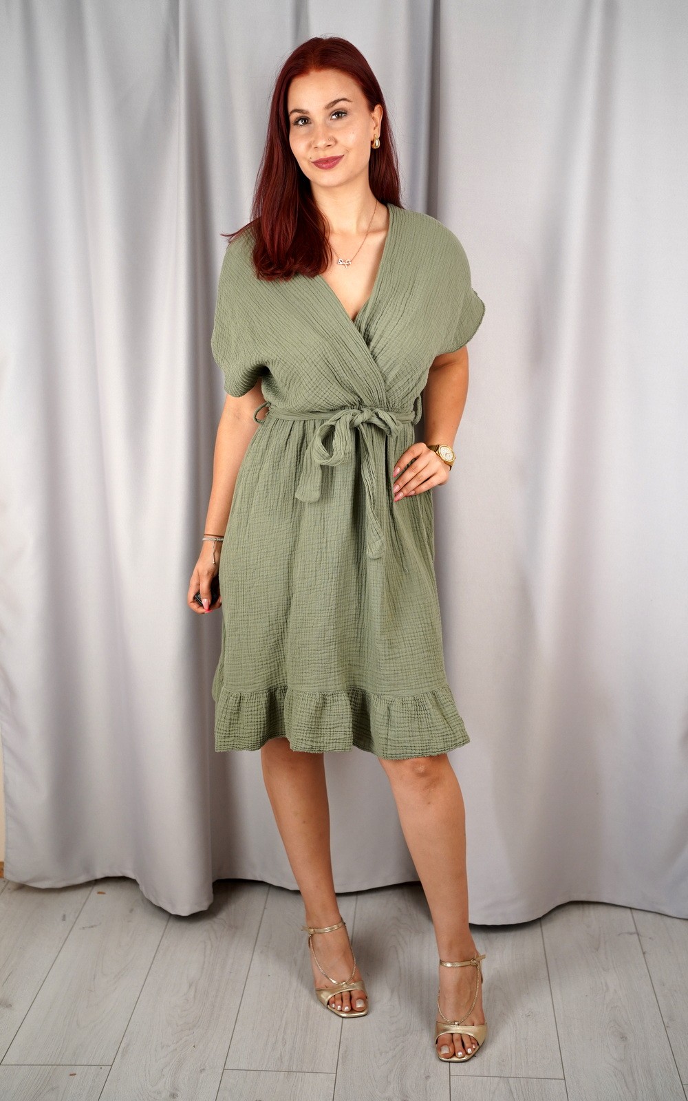 Ženska haljina s preklopom i pojasom na vezanje – gaza – 16506