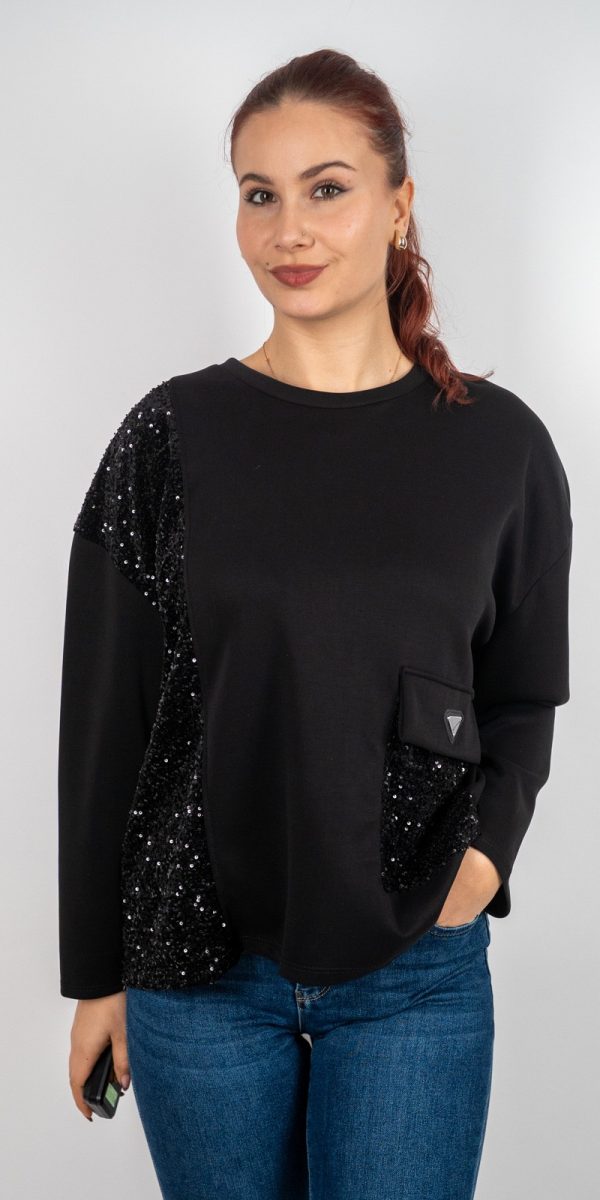 kolekcijaŽenska oversized majica s ukrasnim šljokicama i džepom – 51090
