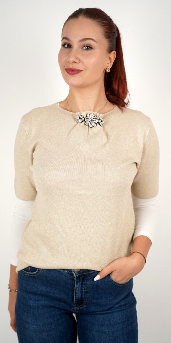 Ženska elegantna majica s sitnim cirkonima i detaljem – 89472
