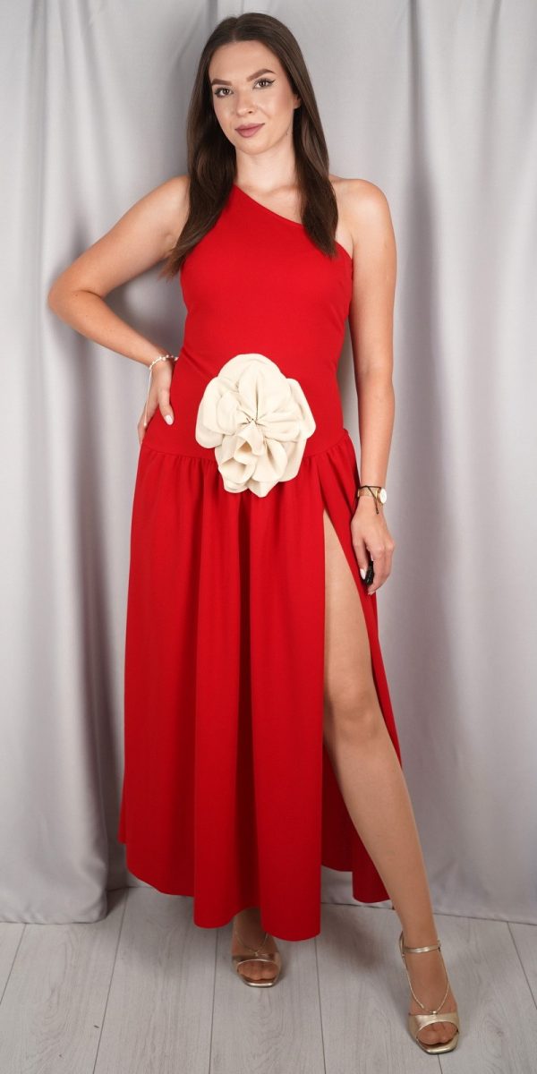 Ženska haljina sa cvjetnim detaljem i visokim prorezom – HP 8278