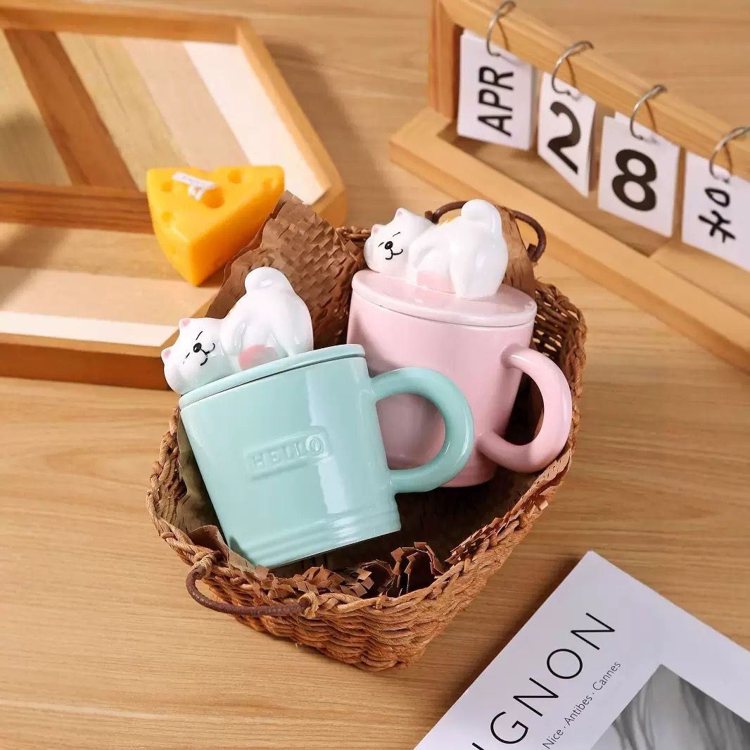 Keramička šalica s poklopcem i figuricom psa 400 ml