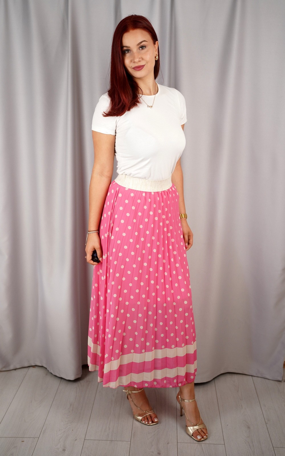 Ženska duga plisirana suknja s točkastim uzorkom – U8806