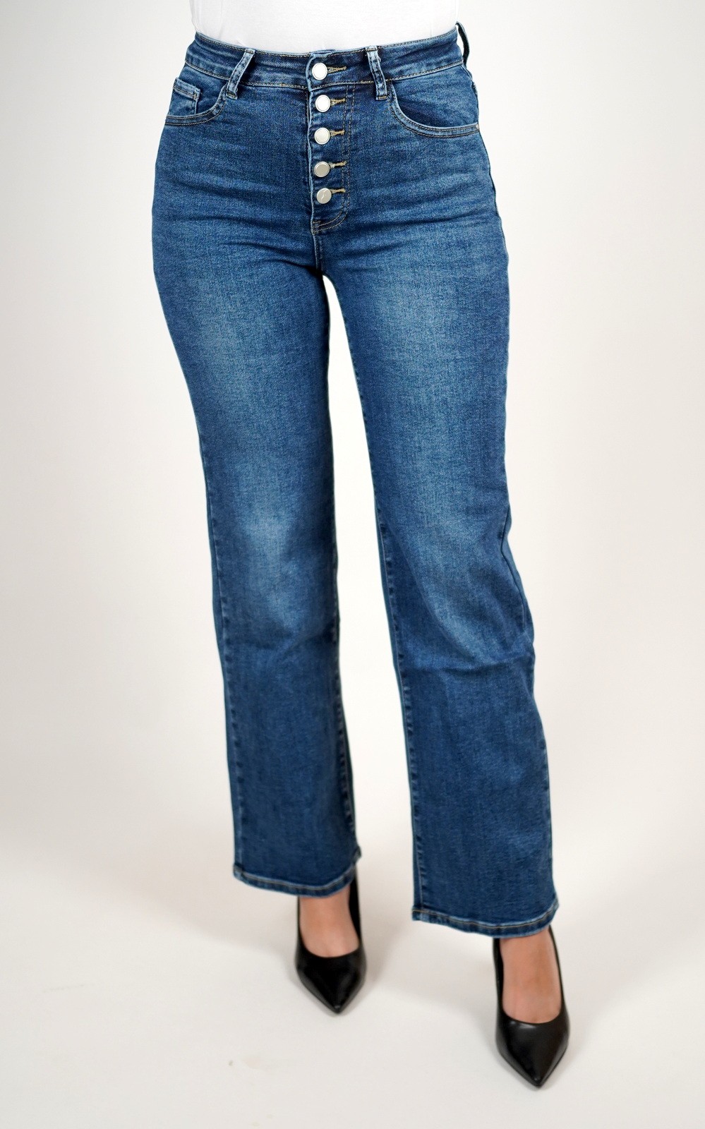 kolekcijaŽenske traperice visokog struka s gumbićima – 3077