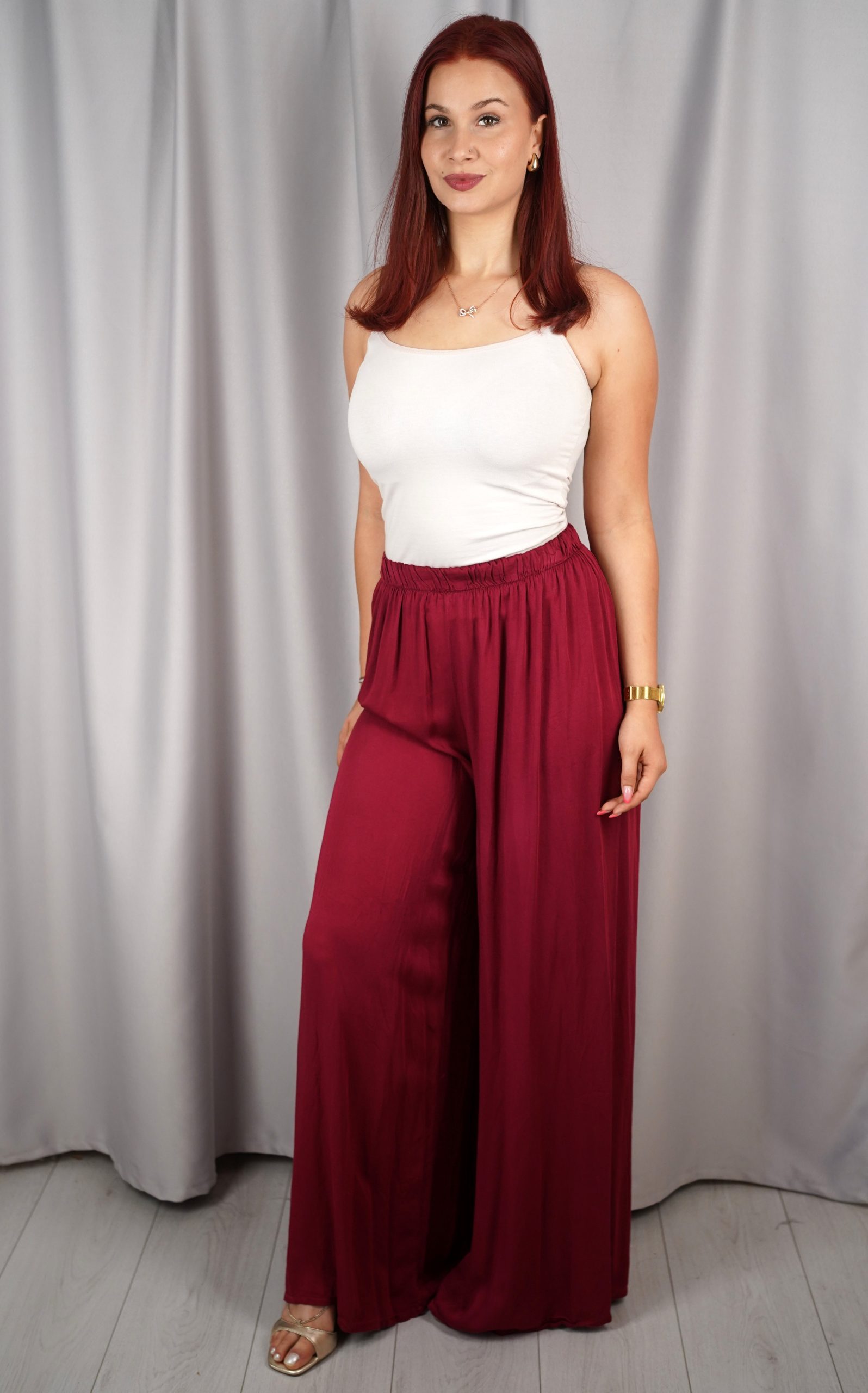 Ženske široke viskozne hlače visokog struka – 3180