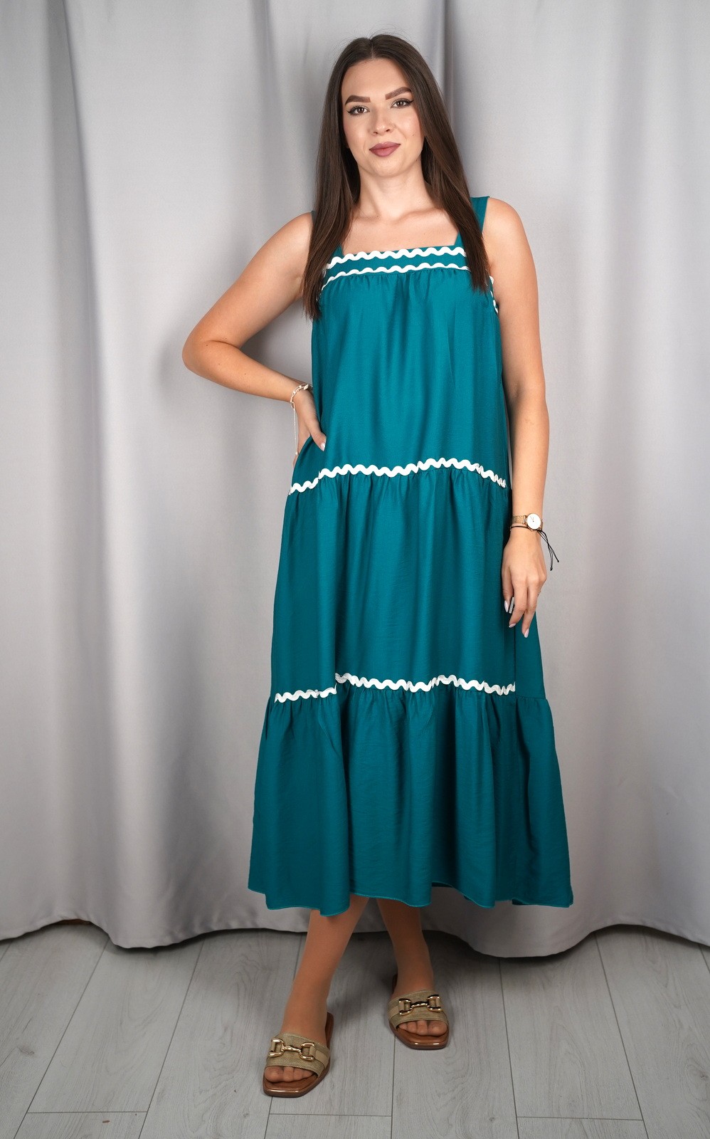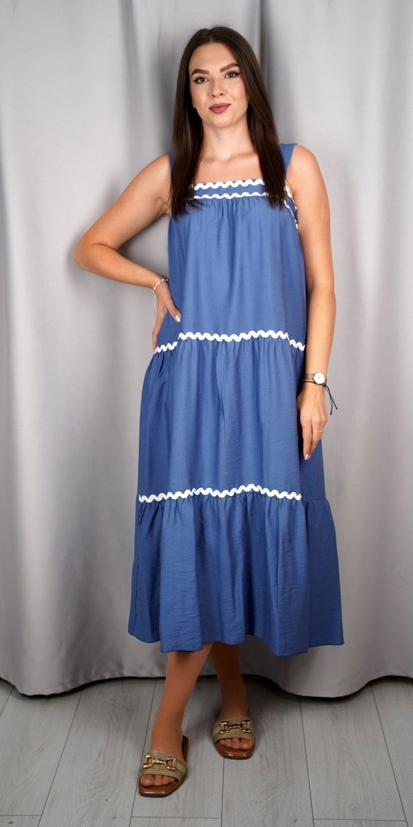 Ženska maxi haljina bez rukava s volanima i ukrasnim detaljima – ART:10429