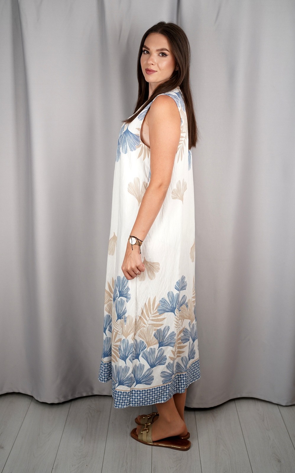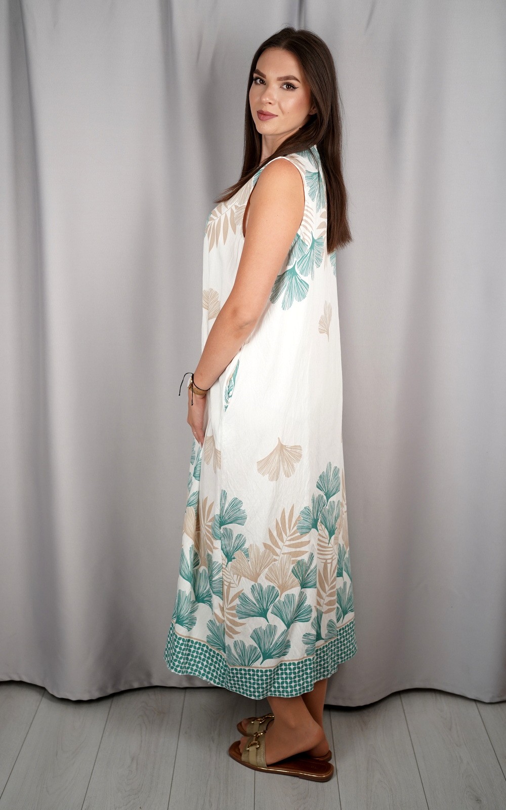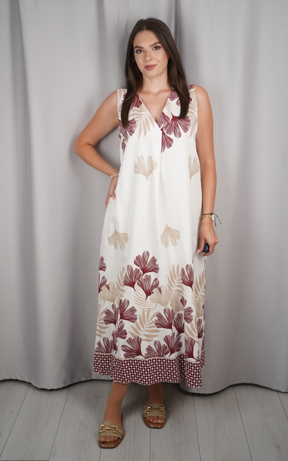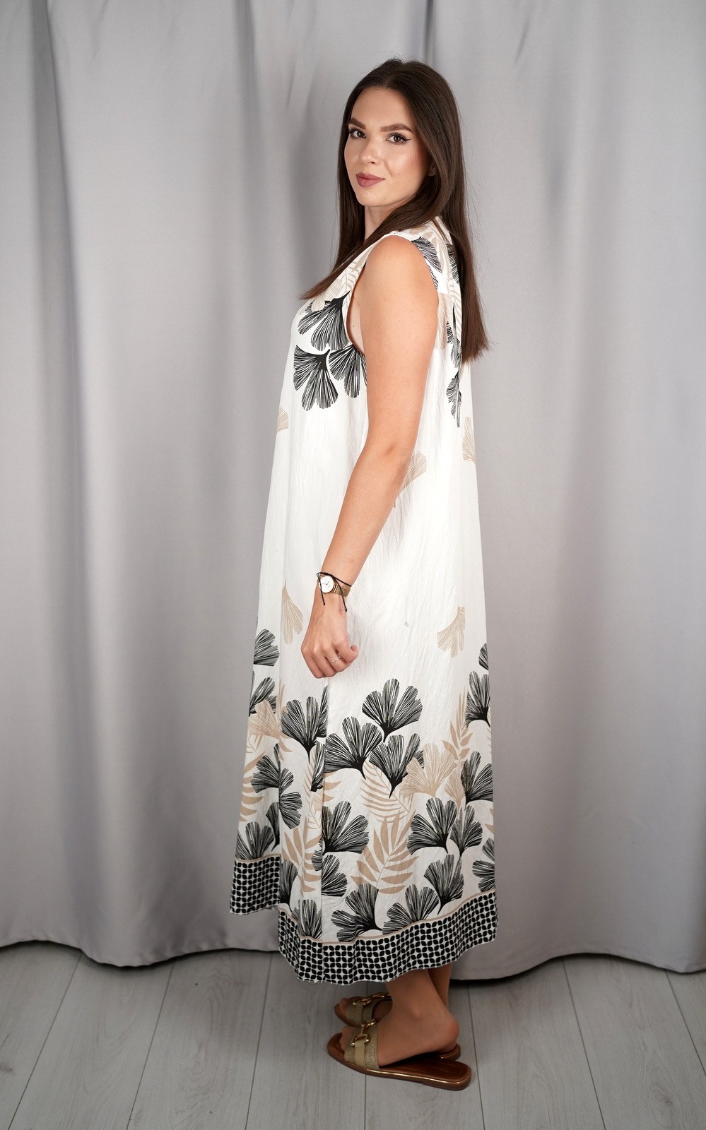 Duga ženska haljina bez rukava s V-izrezom i uzorkom – 25212