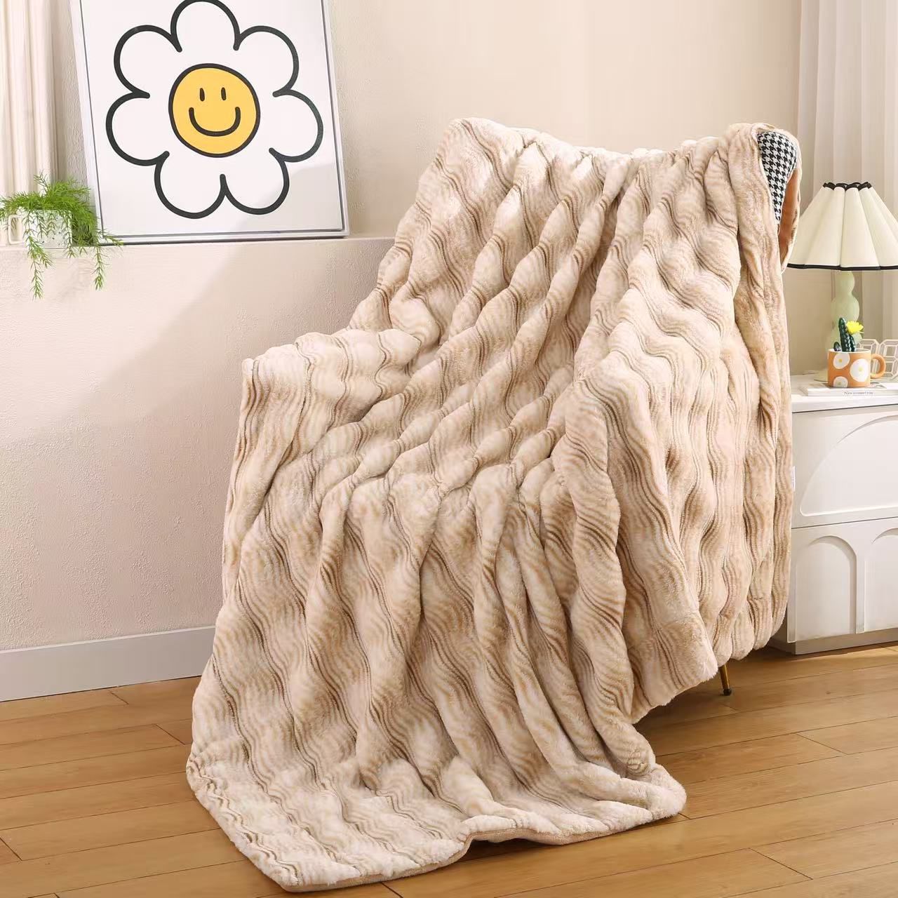 Prepusti se toplini uz našu fluffy termo deku dimenzija 200×230 cm i gotovo 3 kg težine. Izrađena od izuzetno mekanog, gustog i pahuljastog materijala s valovitim reljefnim efektom, pruža osjećaj luksuza i savršenu udobnost za hladne večeri, kauč, krevet ili dnevni boravak.