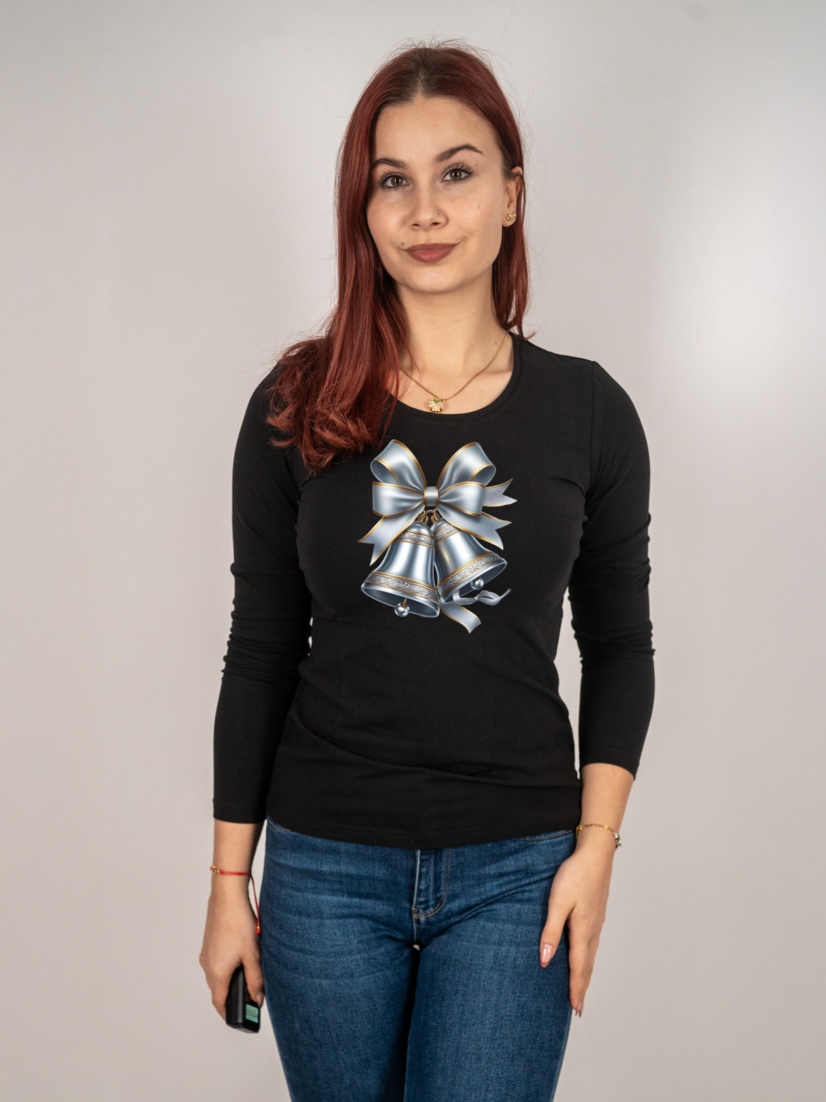 Pamučna majica u veličinama (S) – Holiday Bells Bow