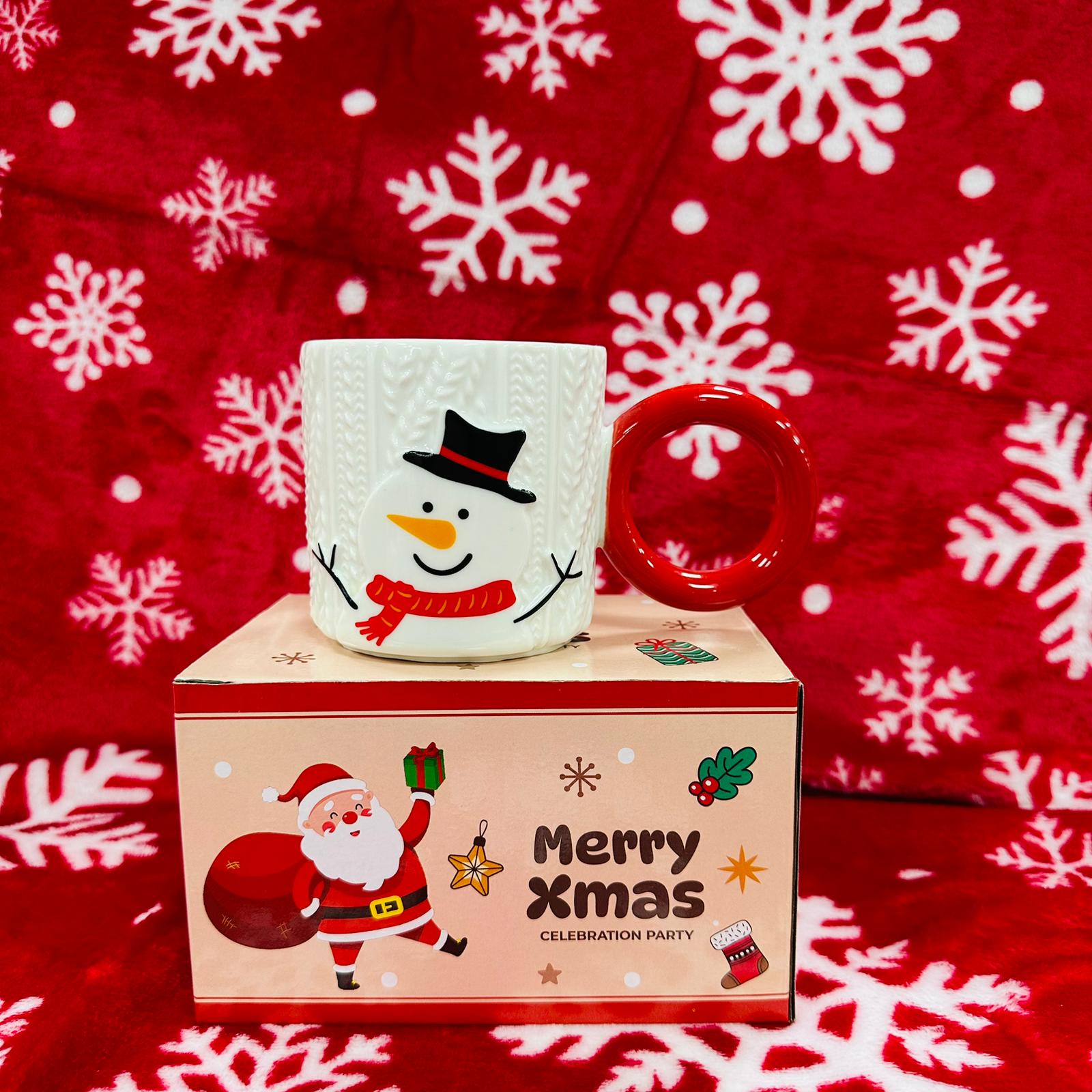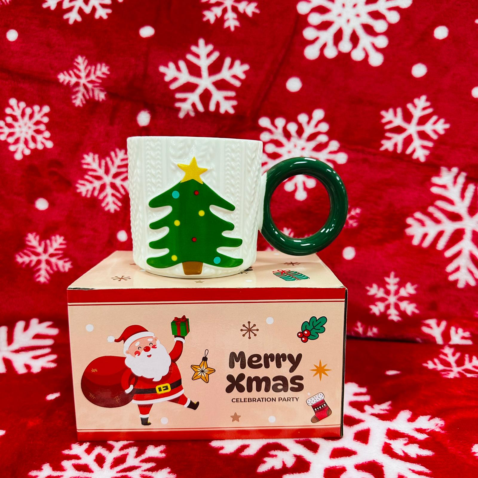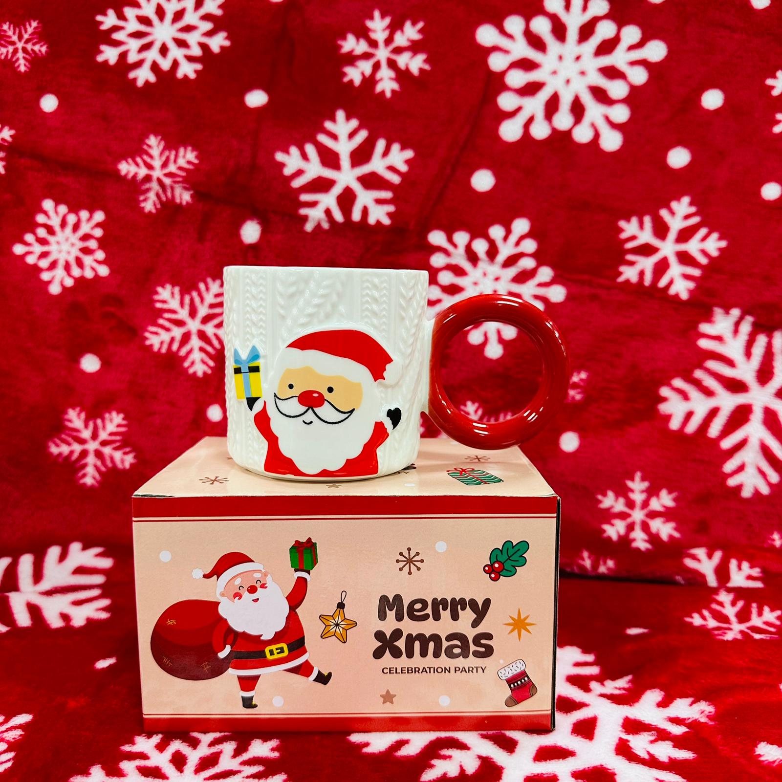 Keramička božićna šalica s 3D reljefnim motivom i okruglom ručkom