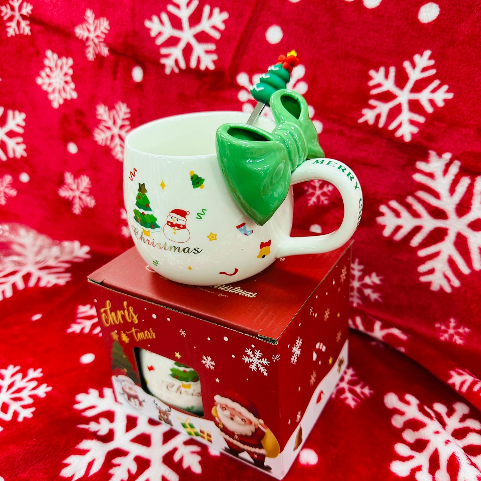 Ova predivna božićna keramička šalica prava je poslastica za sve ljubitelje blagdana. Dizajnirana s upečatljivom 3D mašnom na dršci i dolazi s ukrasnom žličicom koja se uklapa u otvor mašne – praktično i dekorativno u isto vrijeme. Na samoj šalici nalaze se veseli motivi poput božićnog drvca, Djeda Božićnjaka i blagdanskih ukrasa, što je čini savršenim dodatkom za zimske trenutke.