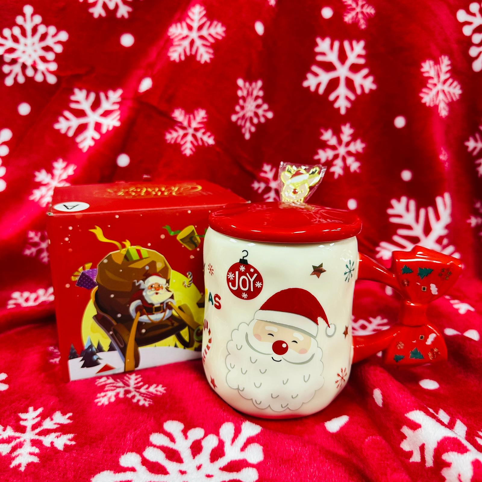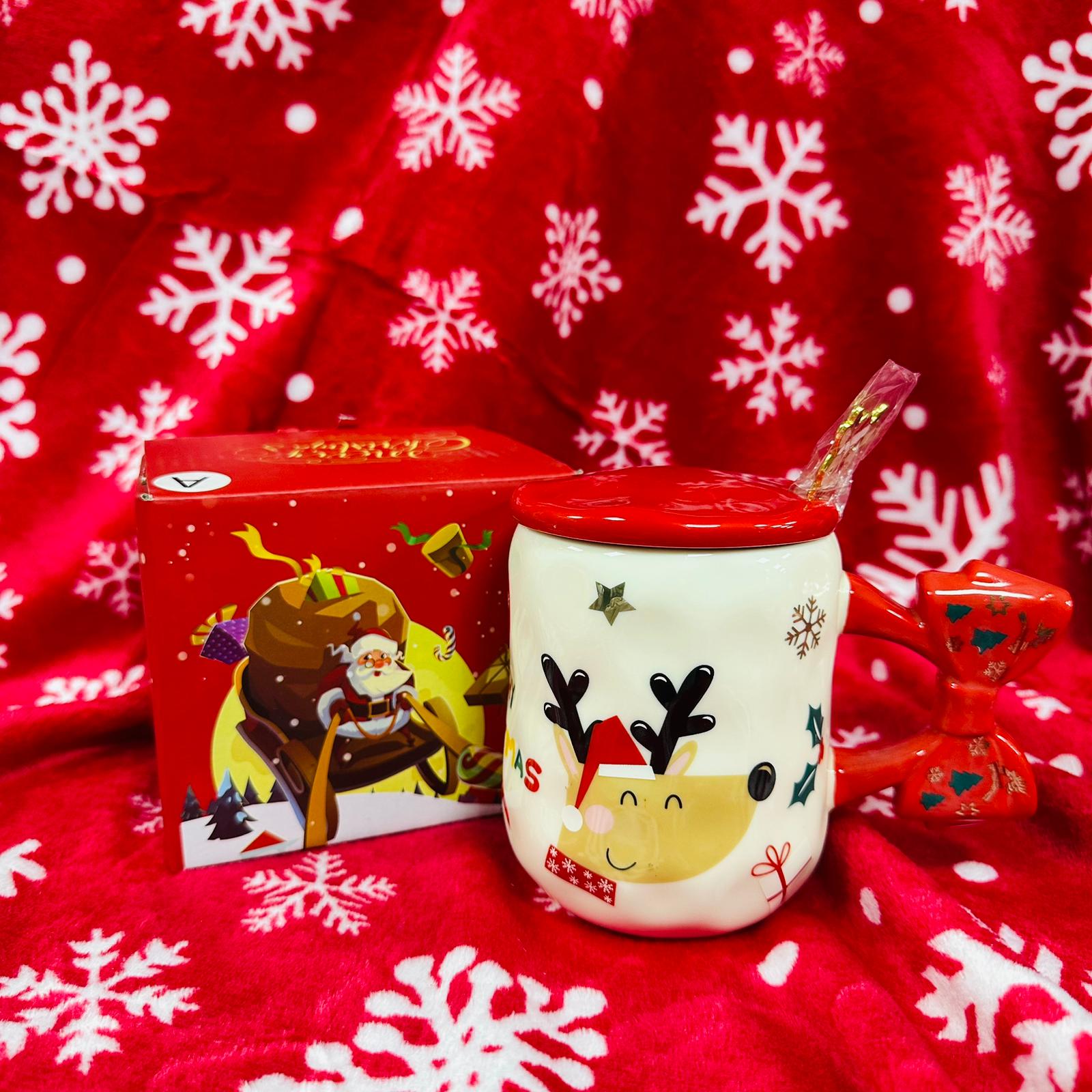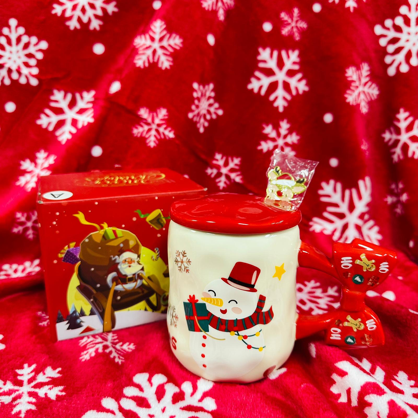 Keramička božićna šalica s poklopcem, figuralnom žlicom i 3D ručkom