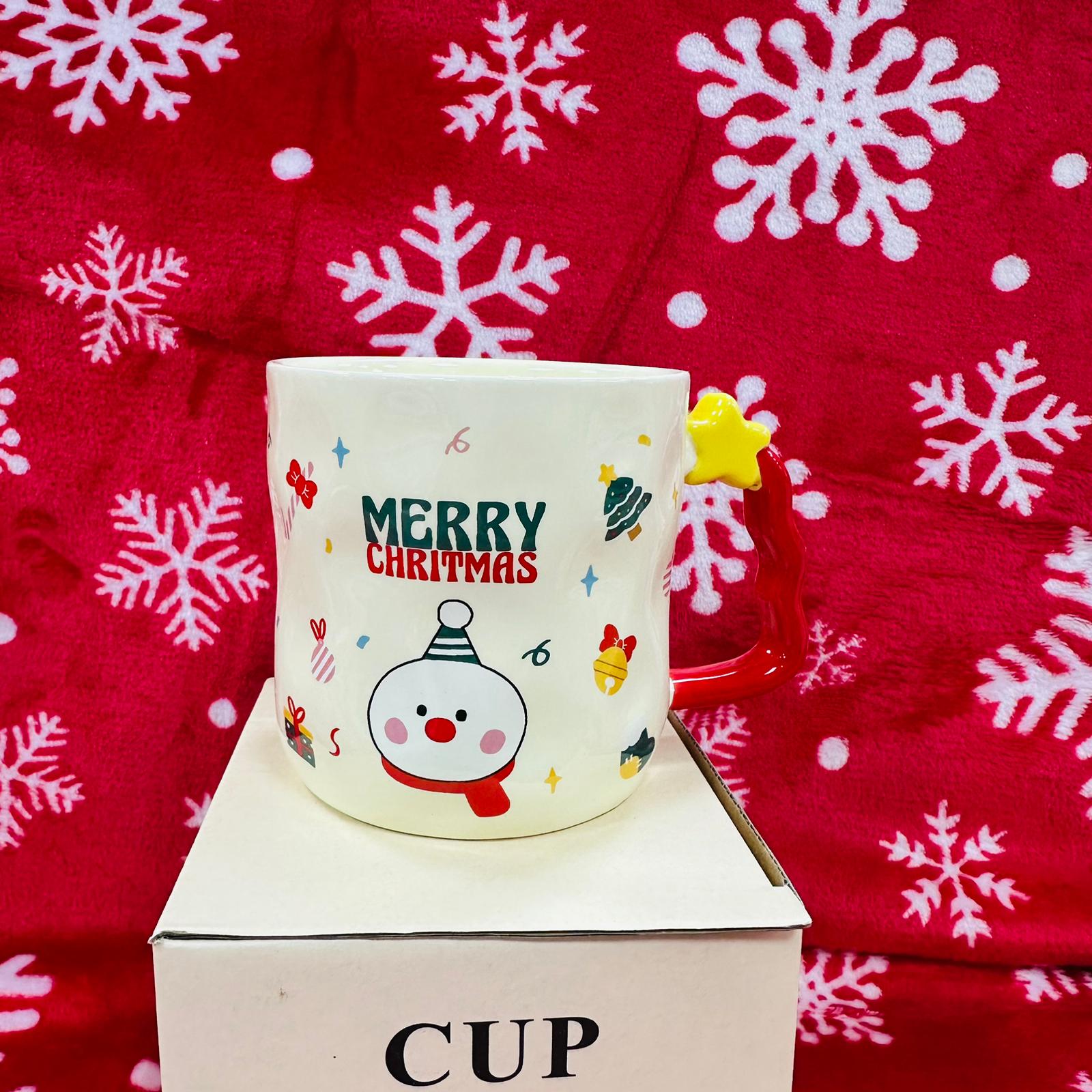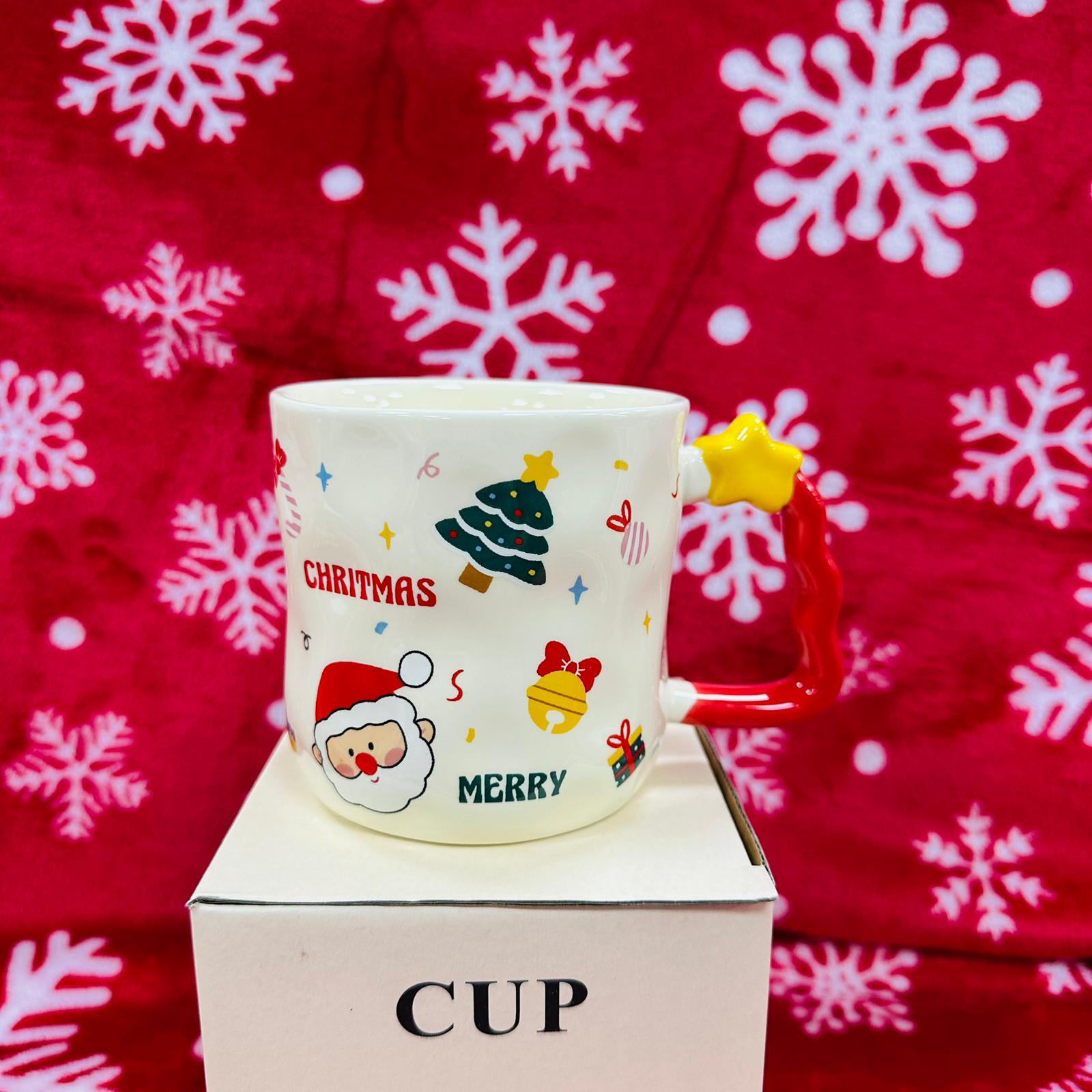 Ova preslatka keramička božićna šalica unosi pravi duh blagdana u svaki dom. Ukrašena je živopisnim božićnim motivima kao što su snjegović, sob, gingerbread ili Djed Božićnjak, a posebnu čar daje njezina 3D ručka u obliku zvijezde koja izgleda kao mali ukras na drvcu. Idealna je za kavu, čaj, tople čokolade i sve zimske napitke.