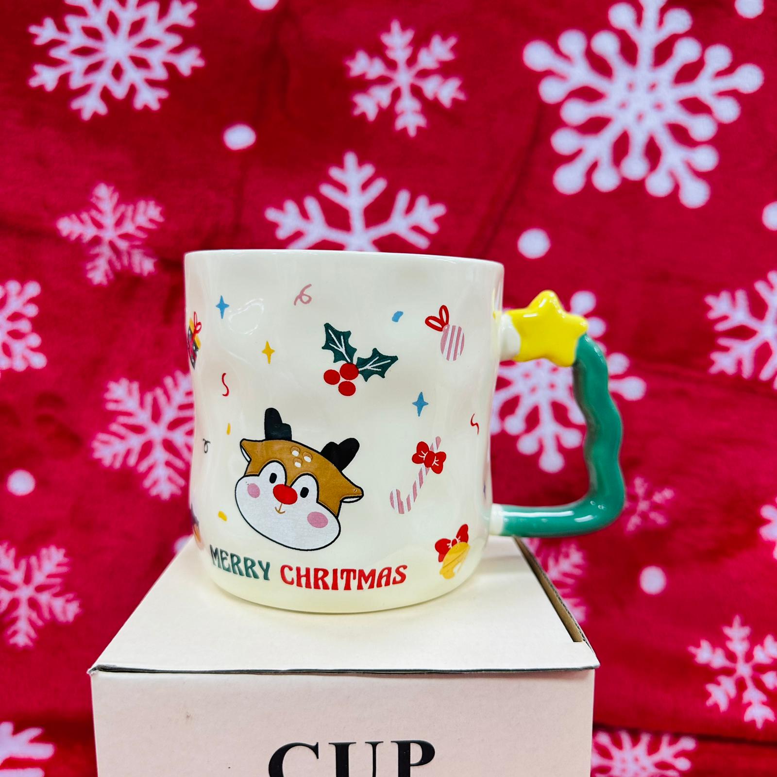 Keramička božićna šalica s reljefnim motivima i 3D ručkom u obliku zvijezde