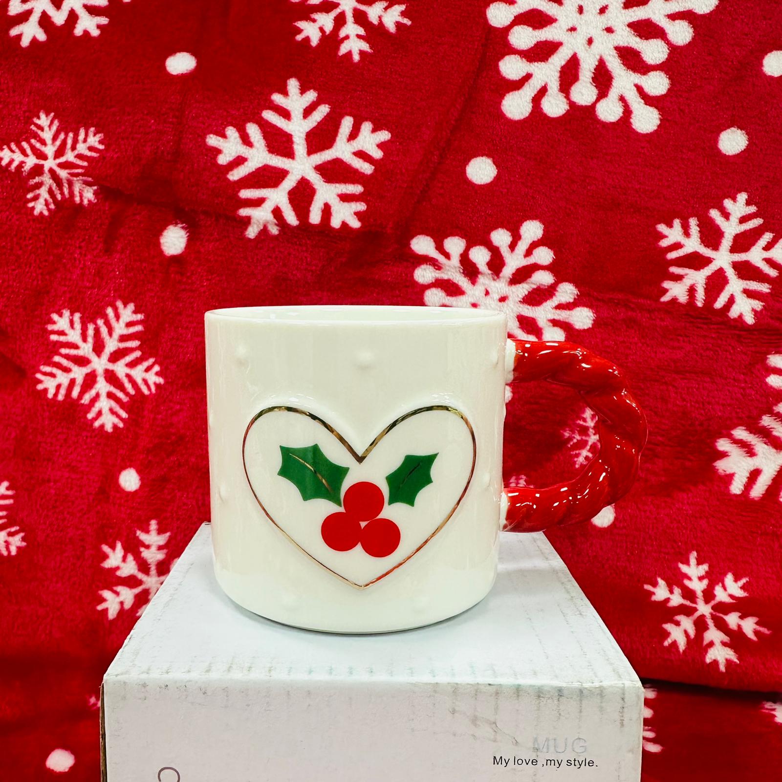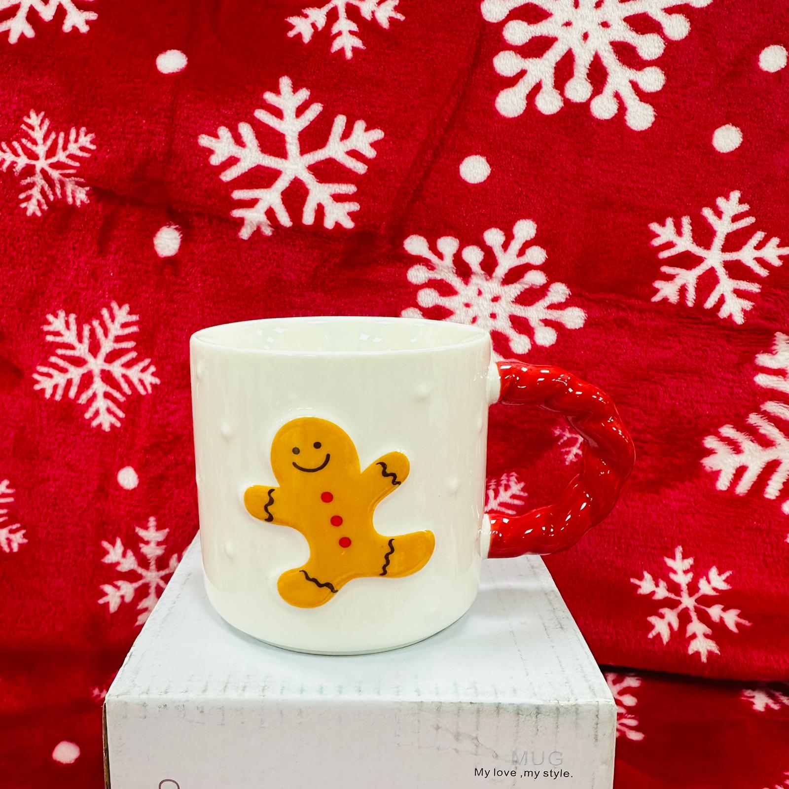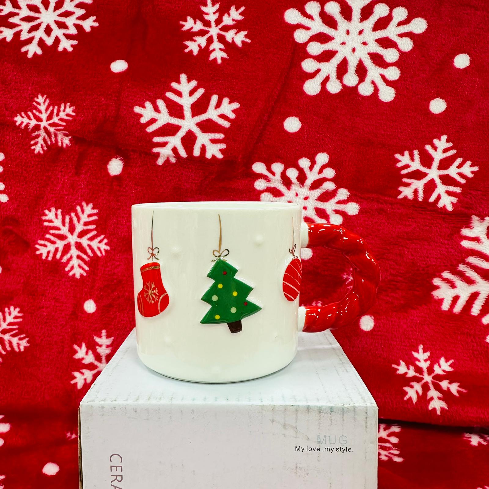 Keramička božićna šalica s reljefnim motivom i ukrasnom ručkom