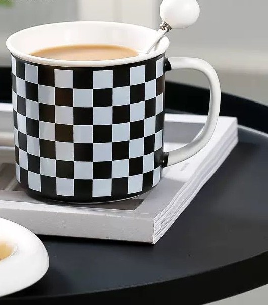 Keramička šalica s modernim geometrijskim uzorkom i žličicom
