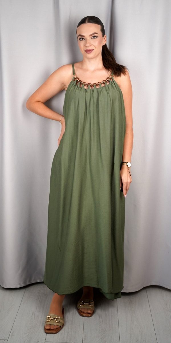 Ženska duga haljina s tankim naramenicama i dekorativnim lancem – ART:23338/23328