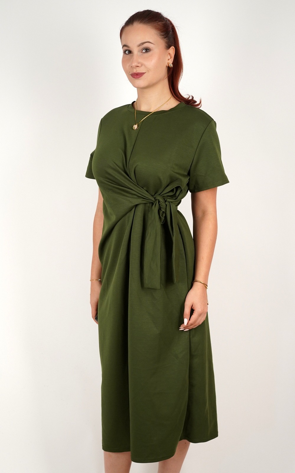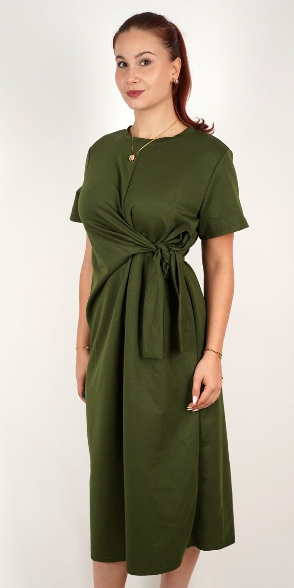 kolekcijaŽenska midi haljina s pojasom na vezanje i efektnim naborom – 5066