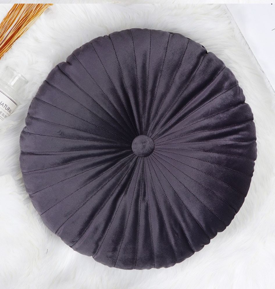 bozic15 očekuje te snižena cijena od 6.80 € za ovaj artikl u košarici.Mekani, punjeni okrugli dekorativni jastuk promjera 35 cm, izrađen od luksuznog baršuna (velura). Karakterizira ga elegantan naborani dizajn (“pleated” ili “tufted”) s gumbom u sredini. Dostupan u bogatoj paleti boja.