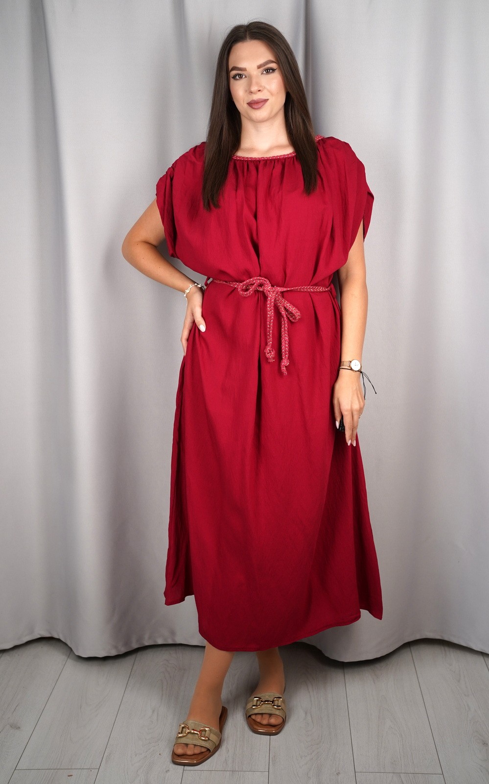 Ženska oversized lepršava maxi haljina s vezicom i širokim rukavima – ART:23539