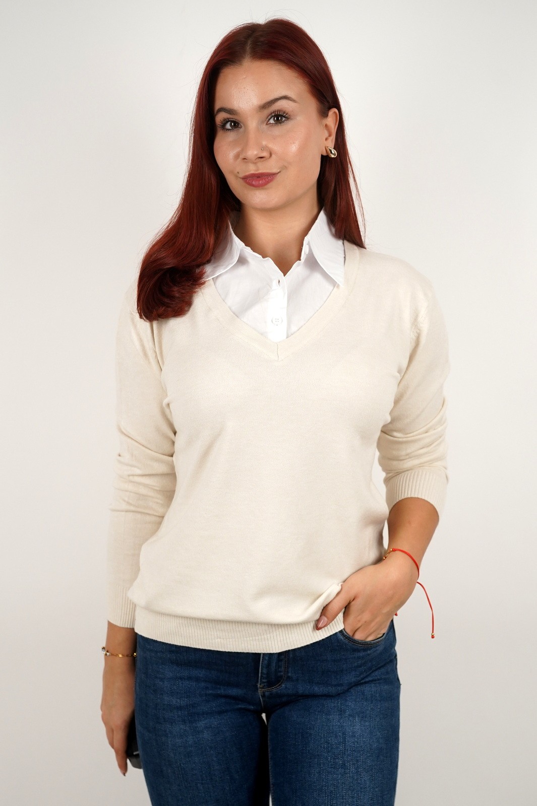 kolekcija10% POPUSTA, BOŽIĆNI POPUSTI, Izdvojeno, Majice, Majice fino meko pletivo, Nova kolekcija, Pletene majice, Pletivo, Plus Size, ŽeneŽenska majica fino meko pletivo s umetnutom kragnom i V-izrezom – u veličinama – A3980
