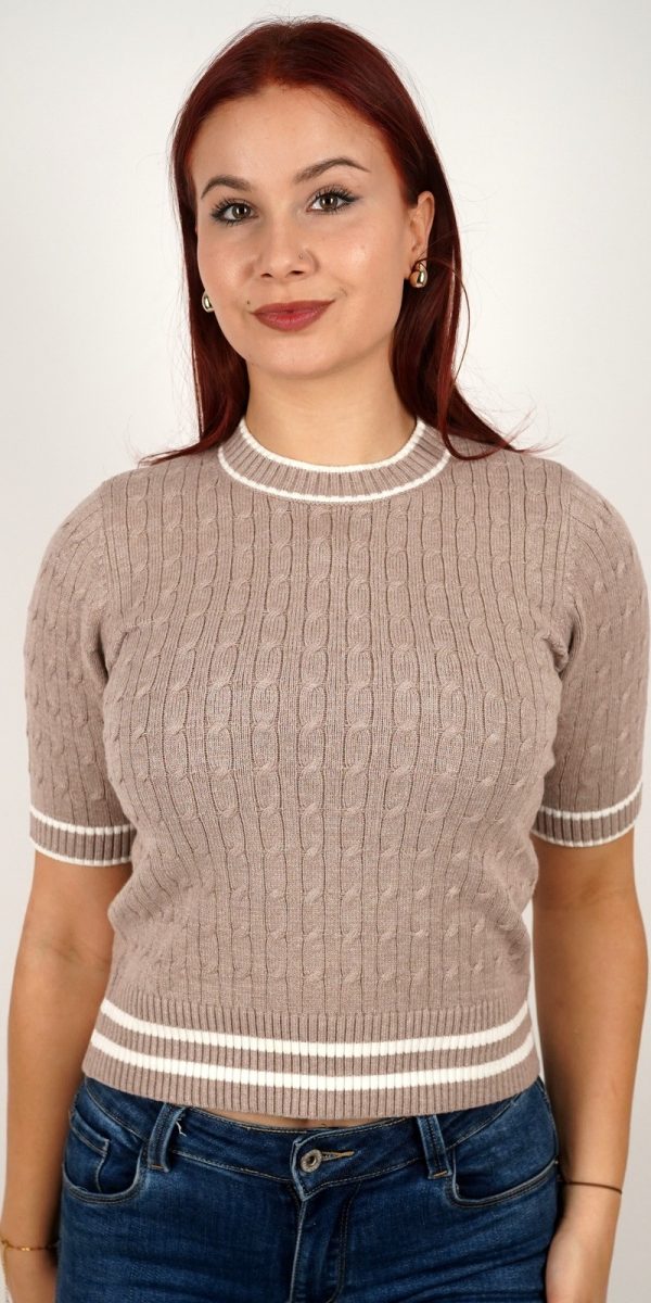kolekcija10% POPUSTA, BOŽIĆNI POPUSTI, Izdvojeno, Majice, Majice fino meko pletivo, Nova kolekcija, Pletene majice, Pletivo, ŽeneŽenska majica s kratkim rukavima i prugastim rubom – fino meko pletivo – u veličinama – A3955