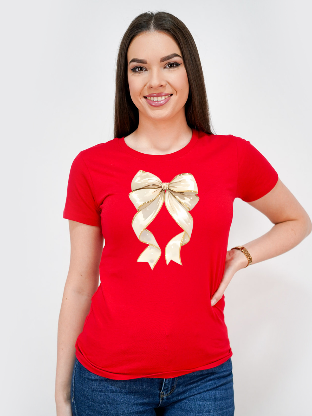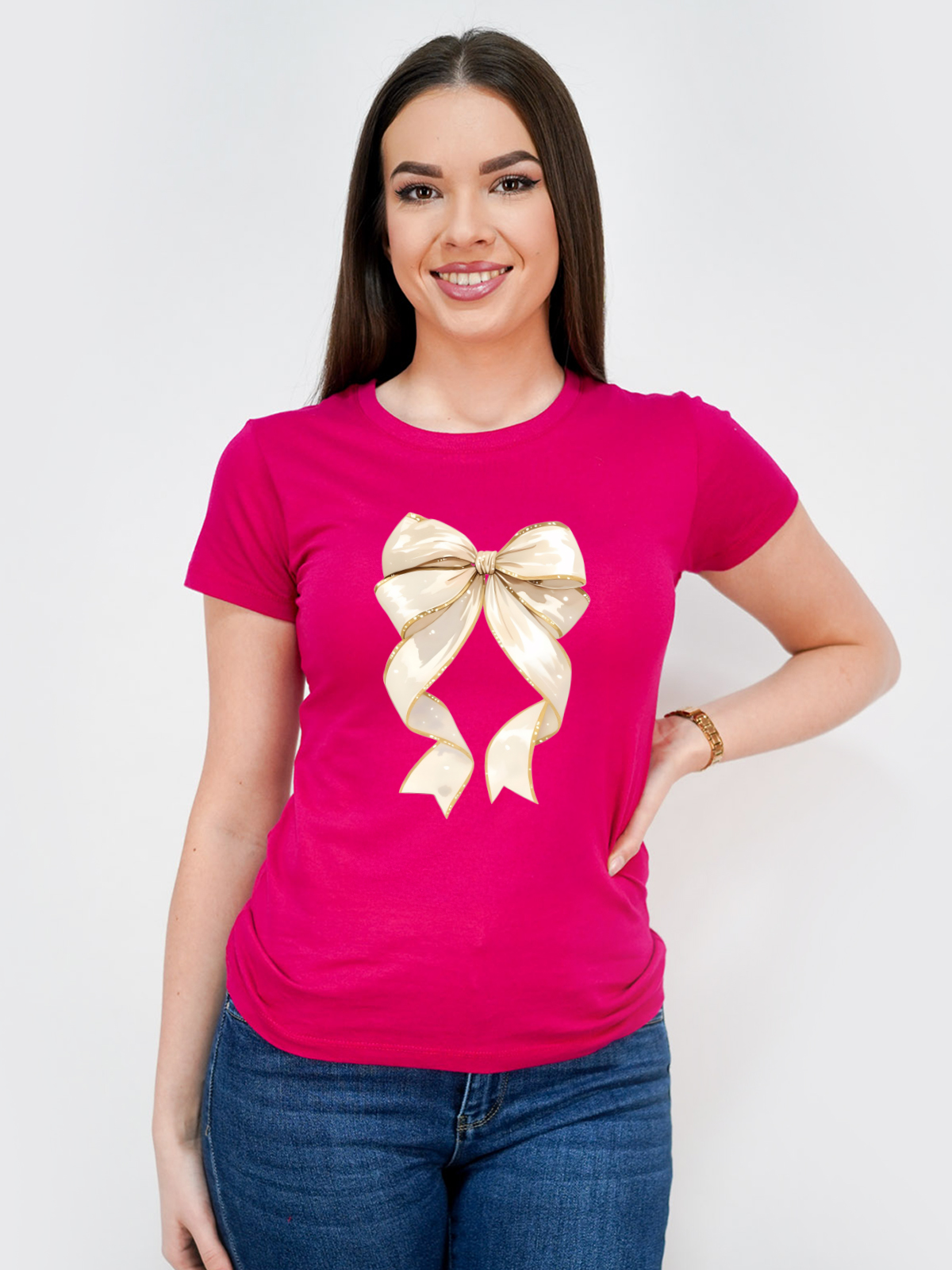 kolekcijaŽenska pamučna majica s natpisom i v-izrezom – 25440