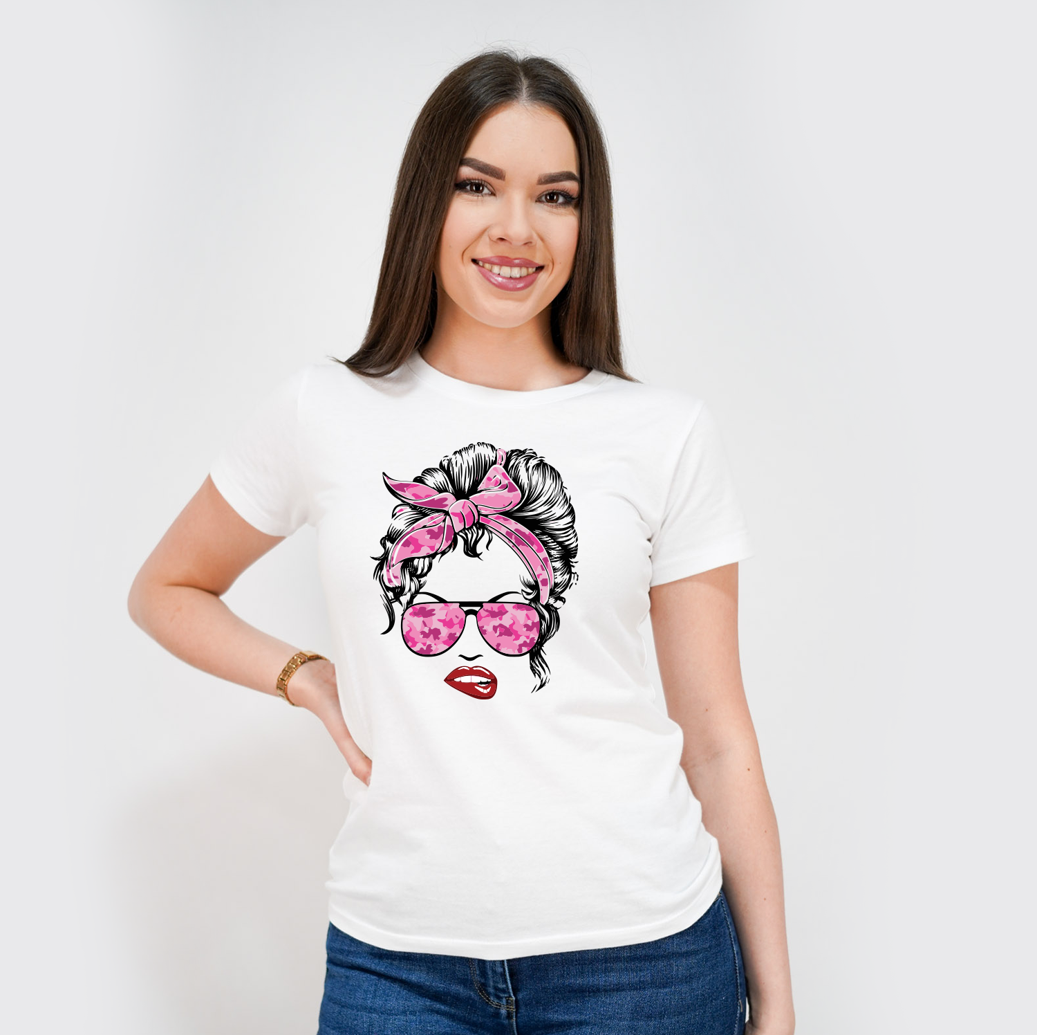 Pamučna majica u veličinama – Sunglasses Lady – Fuchsia