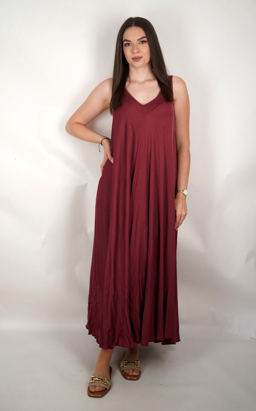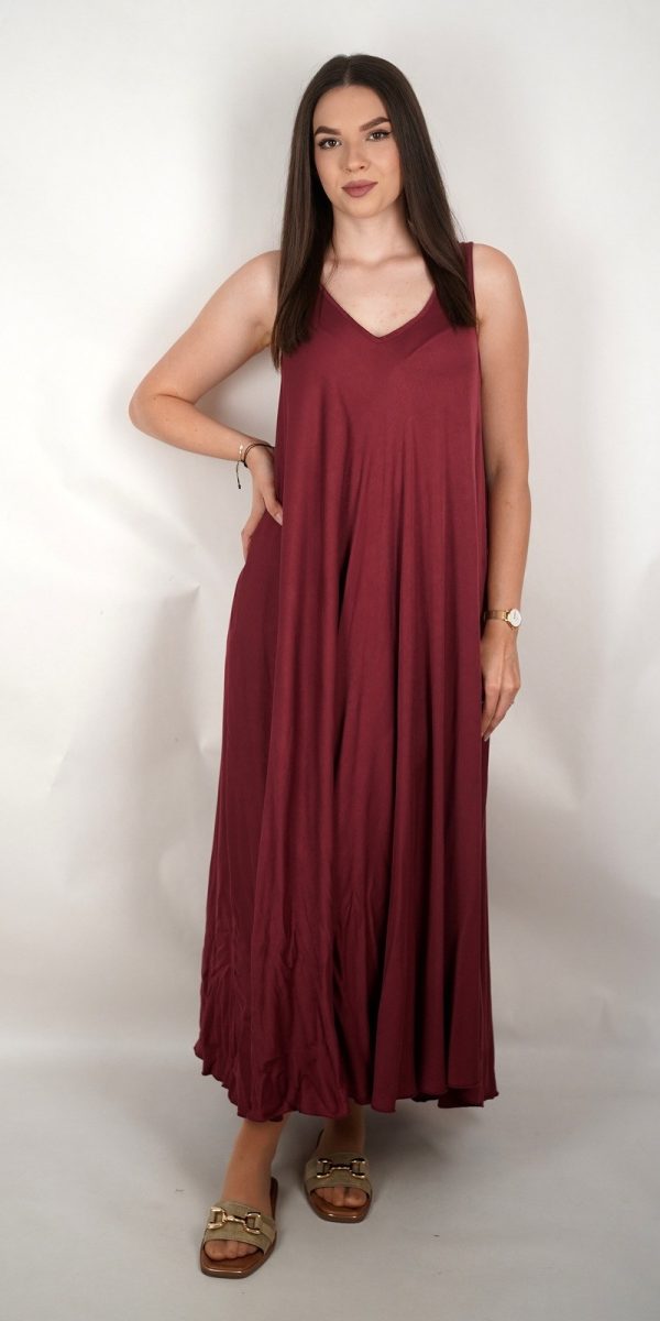 Ženska viskozna haljina s V izrezom i tankim naramenicama – 18011