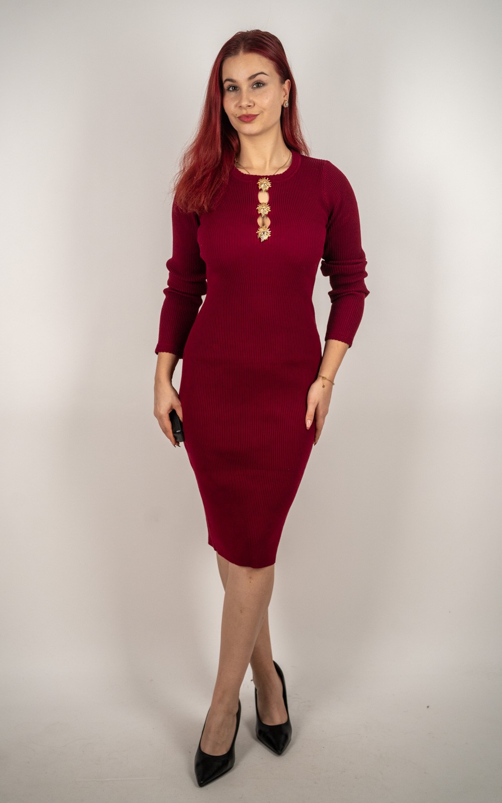 Pletena midi haljina s ukrasnim detaljima i elastičnim krojem – 65088