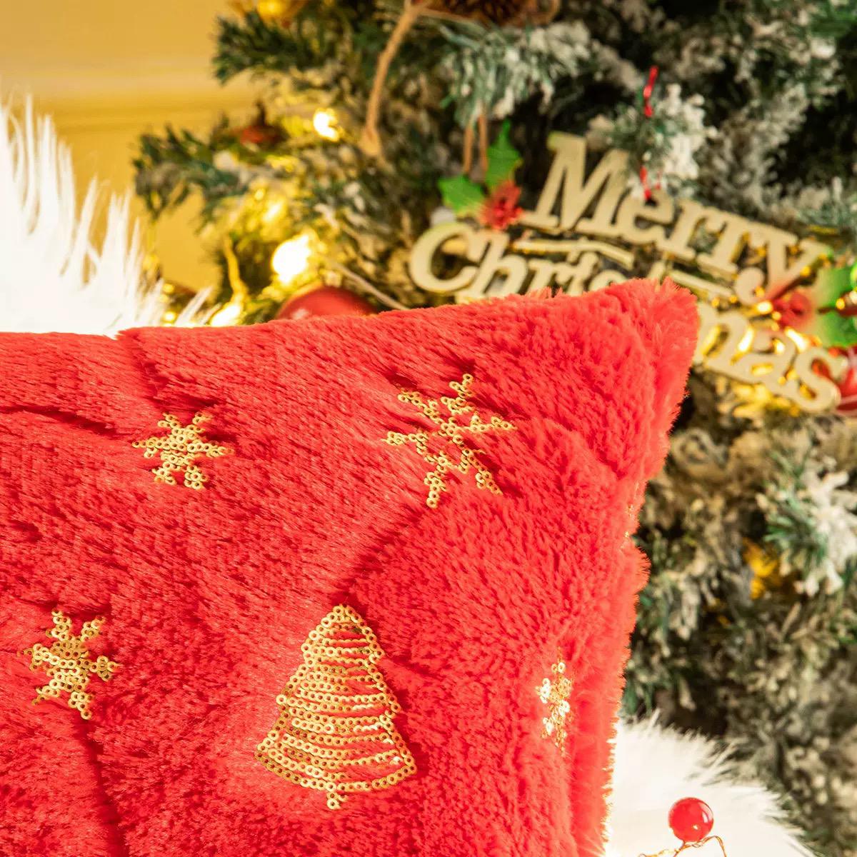 Plišana blagdanska jastučnica s izvezenim zlatnim detaljima – 45×45 cm