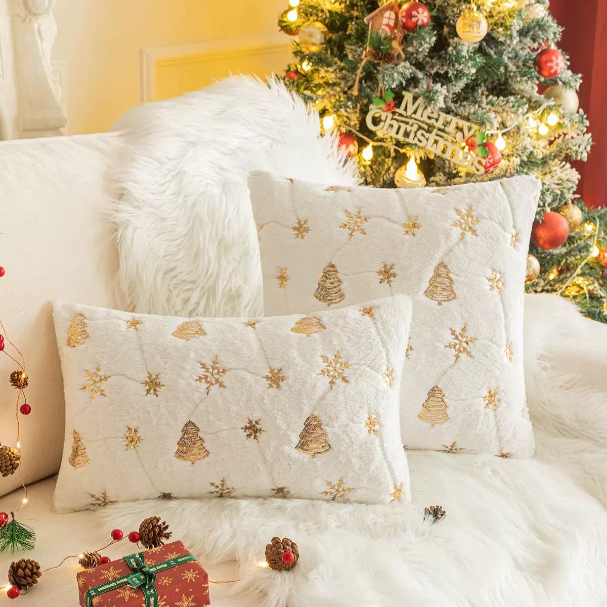 Unesi blagdansku čaroliju u svoj dom s mekanim jastučnicama od pliša, ukrašenima zlatnim izvezenim borovima i pahuljama. Savršene za stvaranje tople, svečane atmosfere u dnevnom boravku ili spavaćoj sobi.
