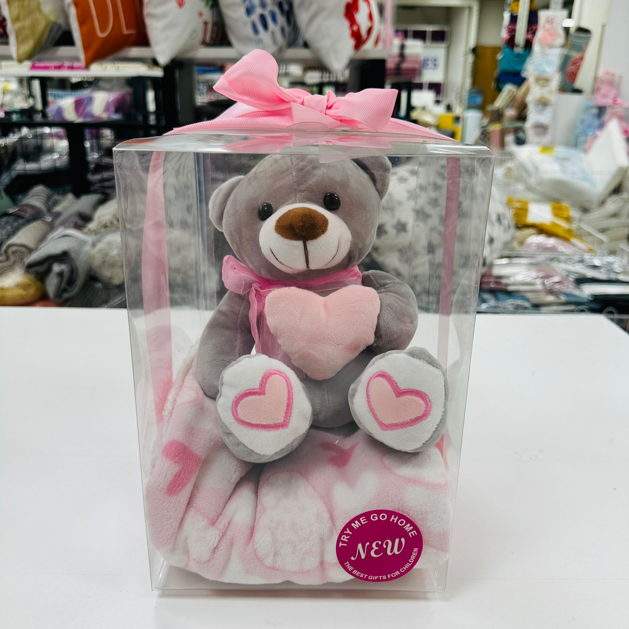 Sadrži mekanu dekicu dimenzija 100×100 cm izrađenu od nježnog i toplog materijala te plišanog medvjedića ili zečića koji će postati omiljeni prijatelj svakog mališana.
