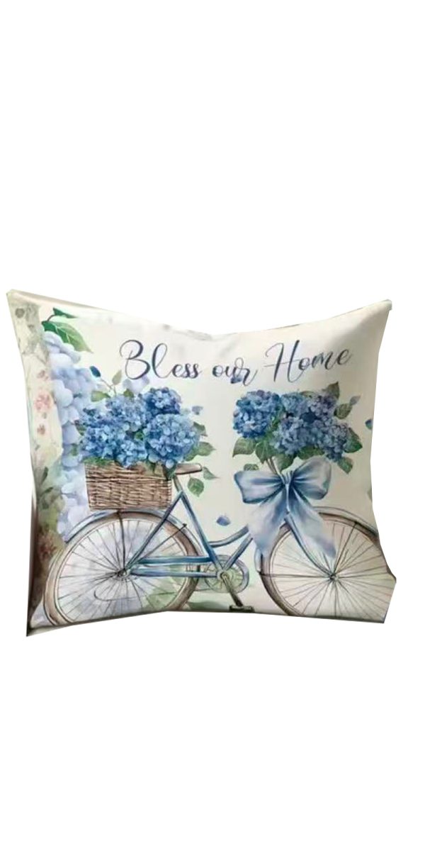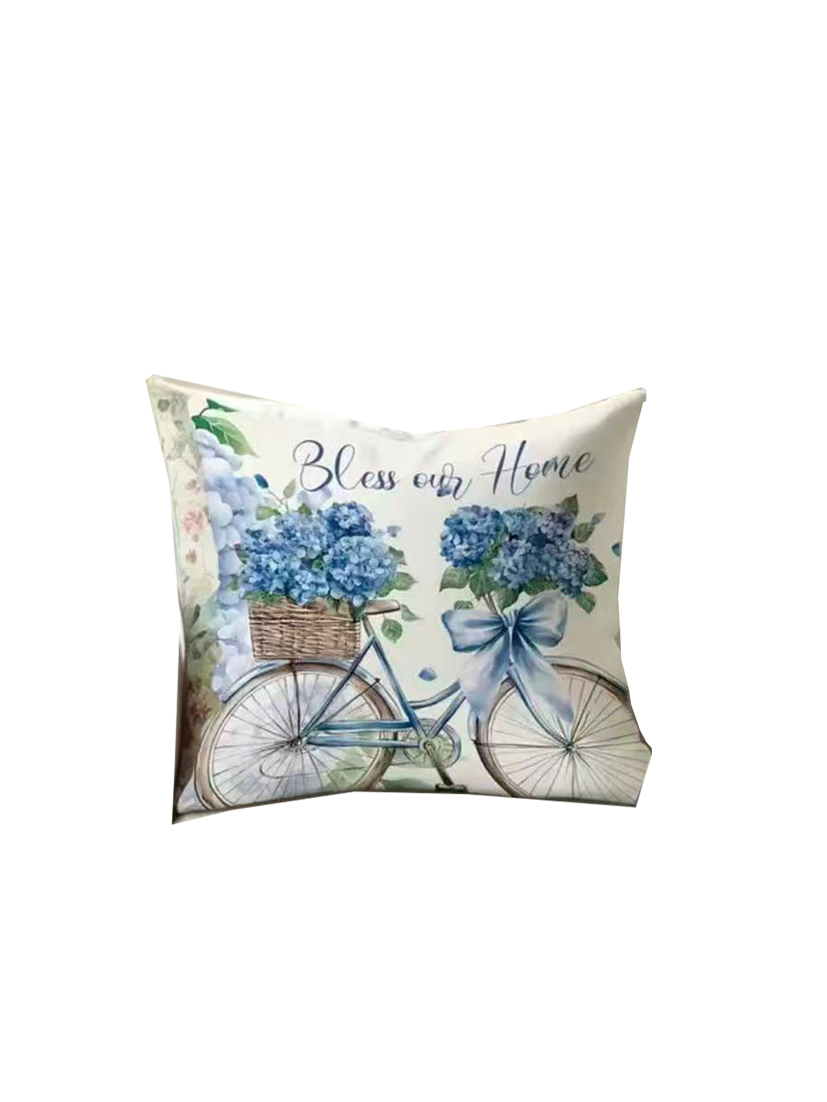 Ukrasna jastučnica s uzorkom – NO:WJ-01 – plavi bicikli i hortenzija