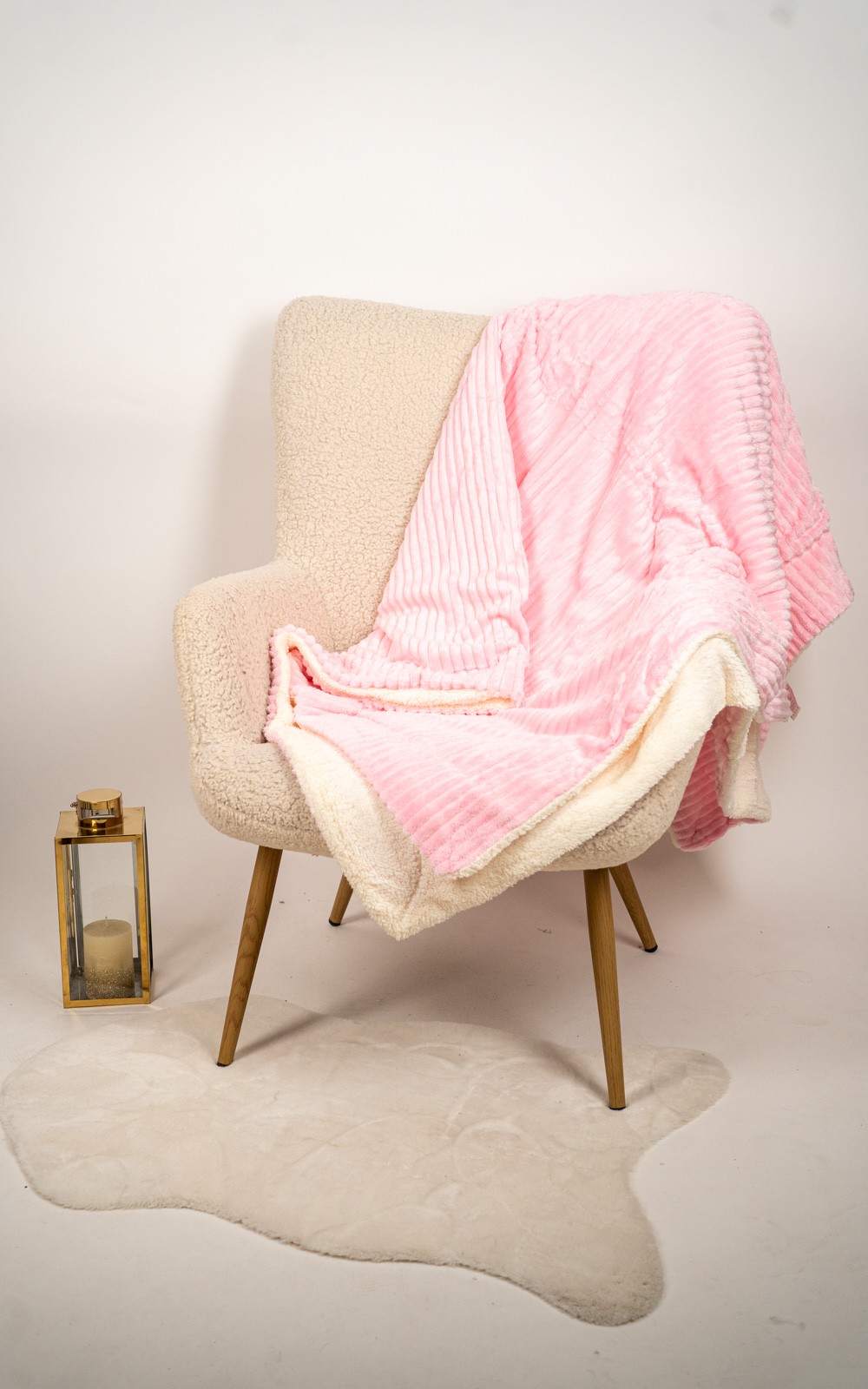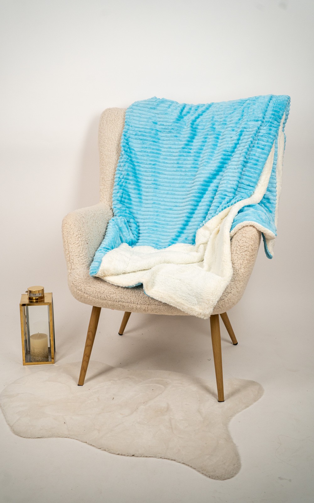 Dvoslojna rebrasta deka (imitacija merino stila) s izuzetno toplom Sherpa/flis podstavom. Dostupna u dimenzijama 150×200 cm i 200×230 cm te u više elegantnih jednobojnih boja. Idealna za zimu, pruža maksimalnu toplinu i luksuznu mekoću.