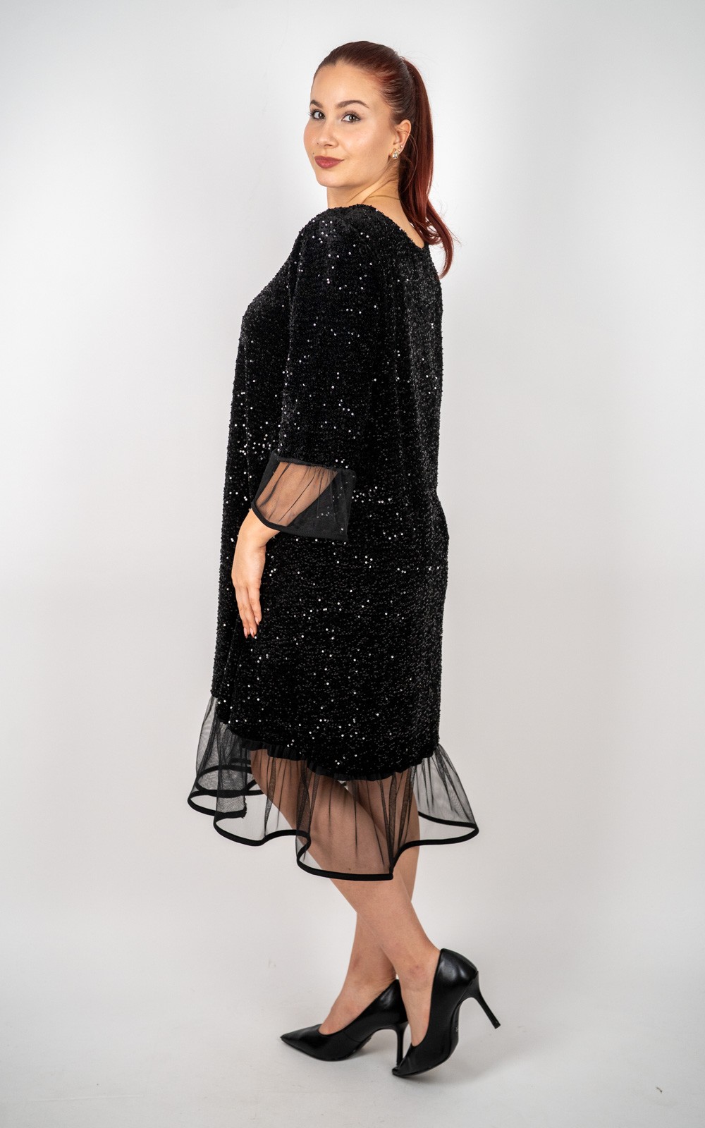 kolekcijaŽenska oversized elegantna haljina s til detaljima i sjajnim efektom – 39427