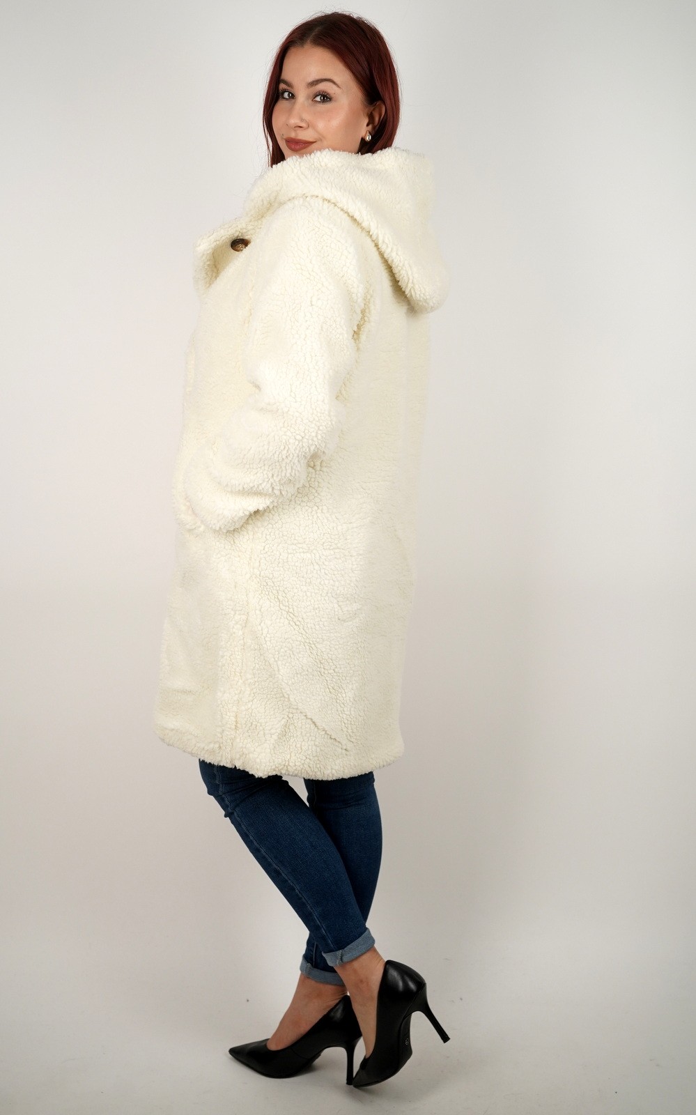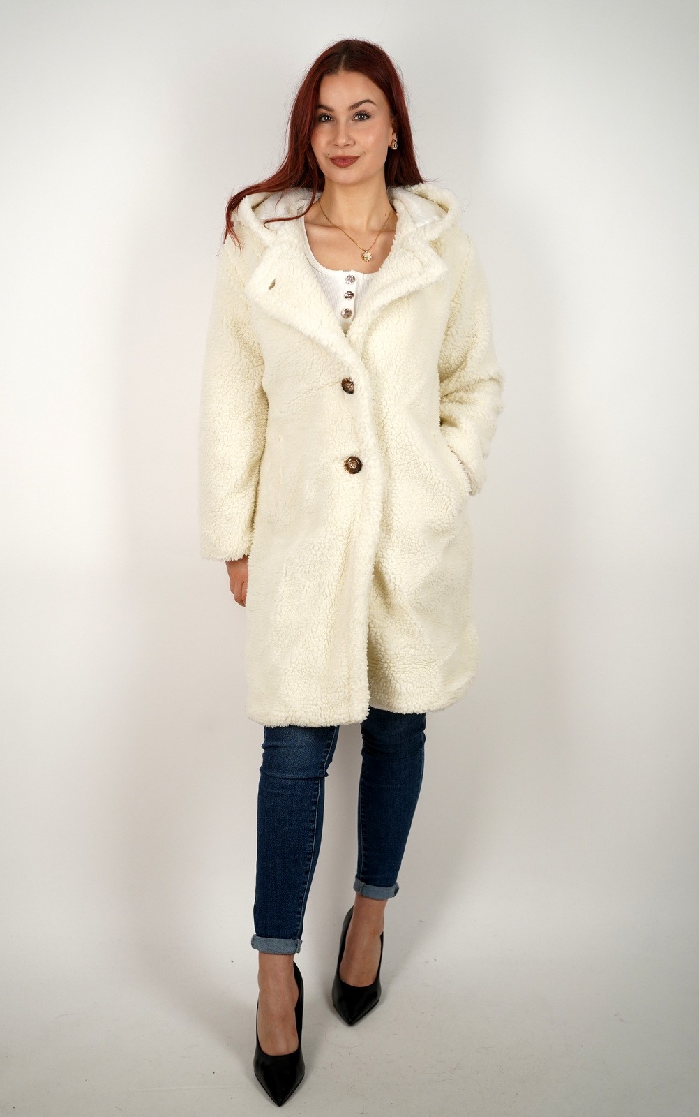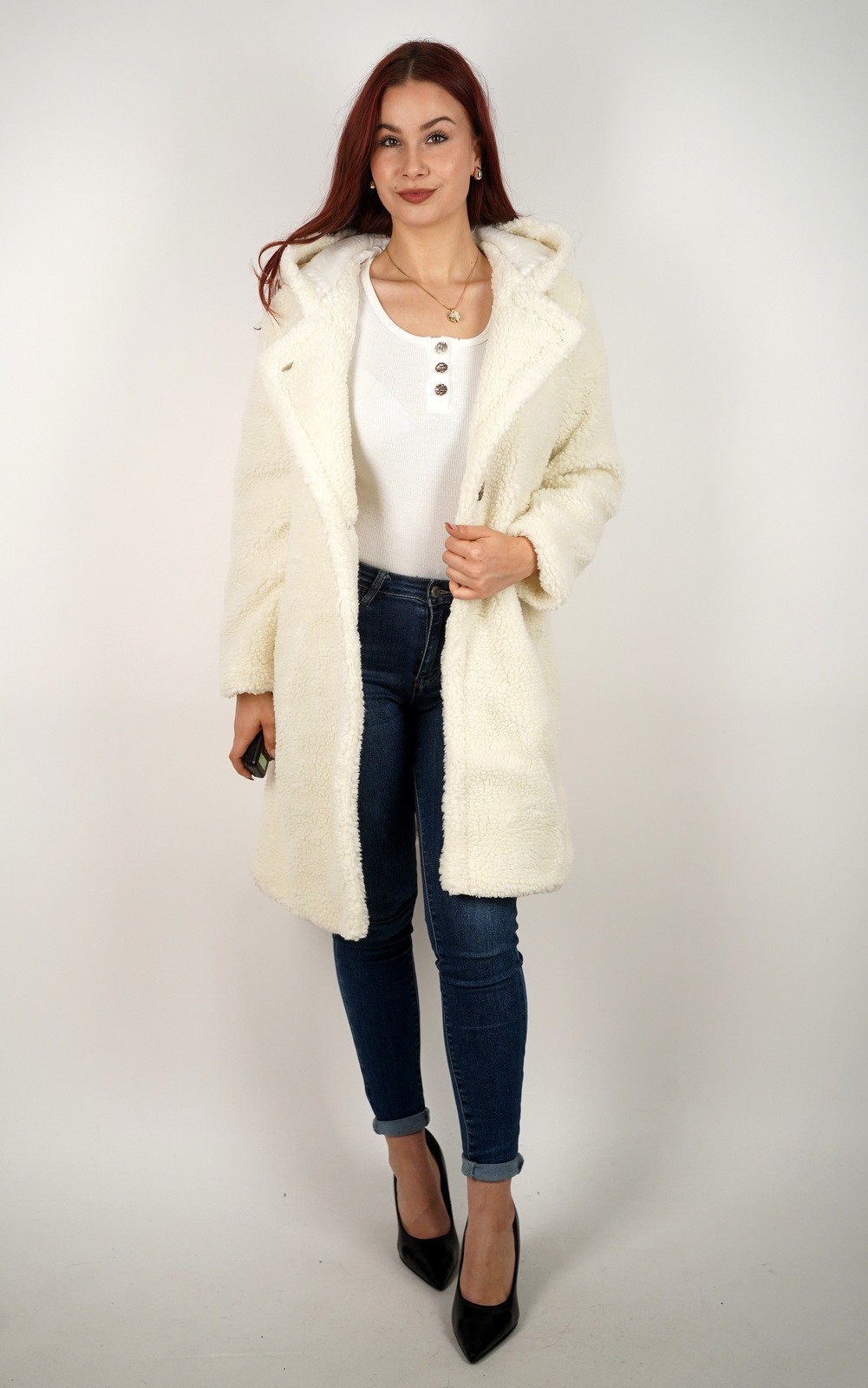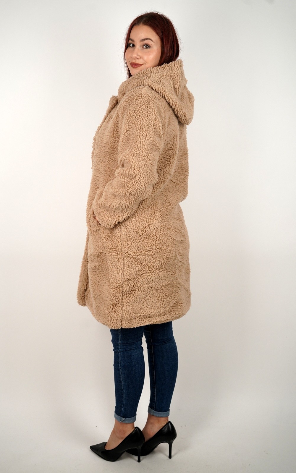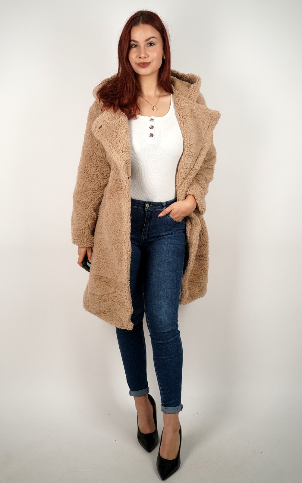 Teddy coat s kapuljačom je savršen izbor za hladne dane, pružajući nevjerojatnu toplinu i udobnost. Ovaj kaput izrađen je od mekog i plišanog materijala koji imitira izgled teddy medvjedića, čime donosi dozu razigranosti i stila. S kapuljačom koja dodatno štiti od vjetra i hladnoće, ovaj model je praktičan i funkcionalan. Njegov oversized kroj omogućuje slobodu kretanja, dok se lako kombinira s različitim outfitima, od casual do elegantnih. Idealno za svakodnevno nošenje ili posebne prigode, ovaj kaput će zasigurno postati vaš omiljeni komad zimske garderobe.