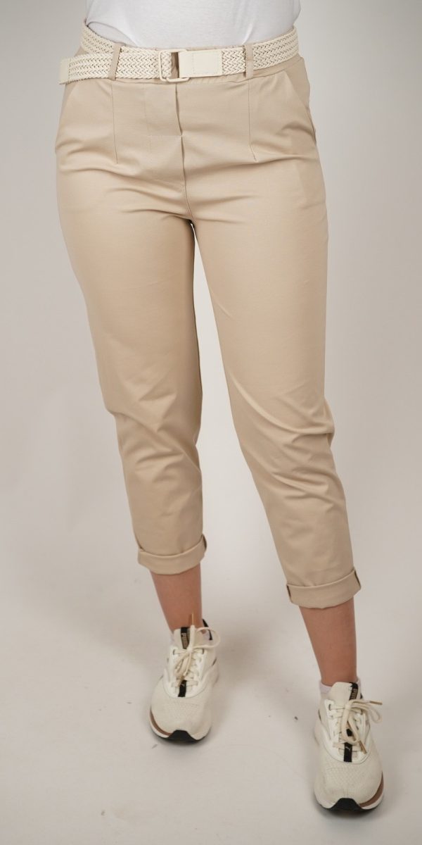 kolekcijaŽenske elastične hlače 7/8 dužine s pojasom i džepovima – bež pleteni remen – 2037