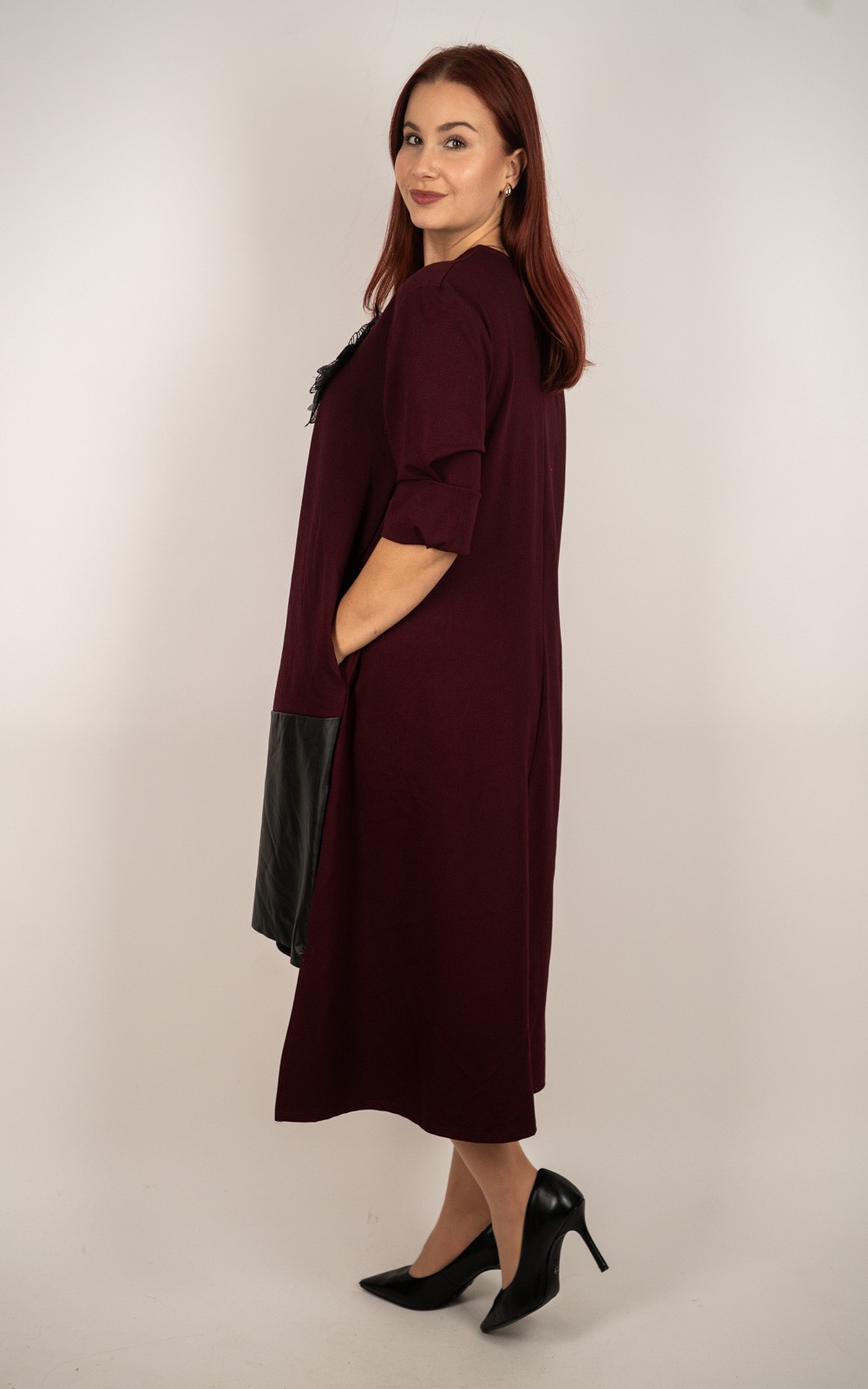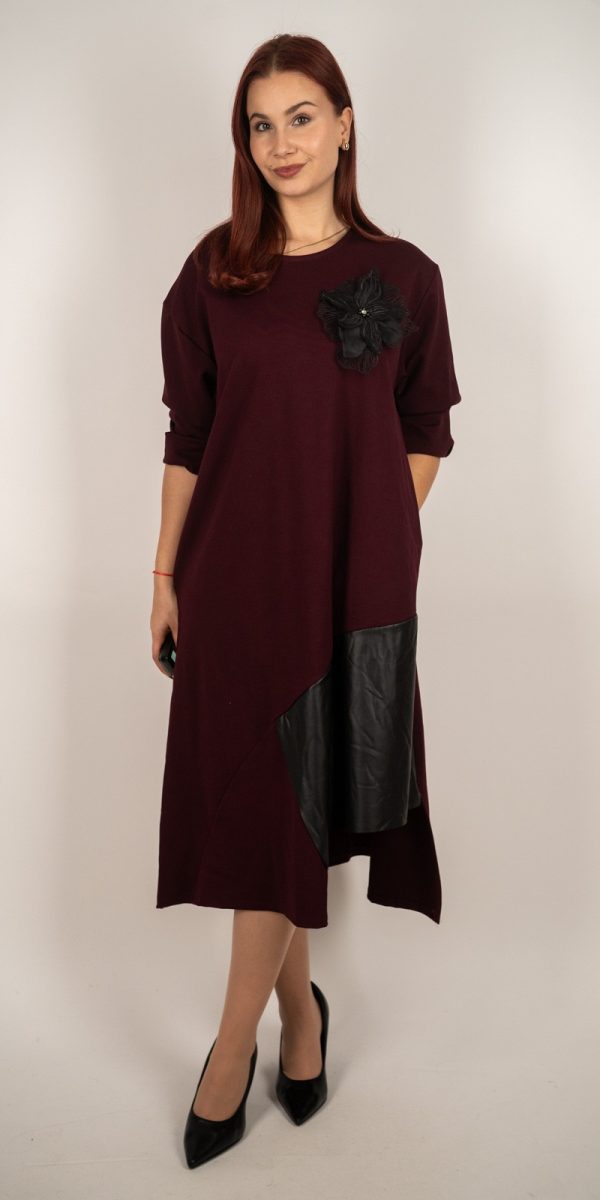 kolekcijaŽenska oversized haljina s kožnim detaljem i cvjetnim ukrasom – 39231