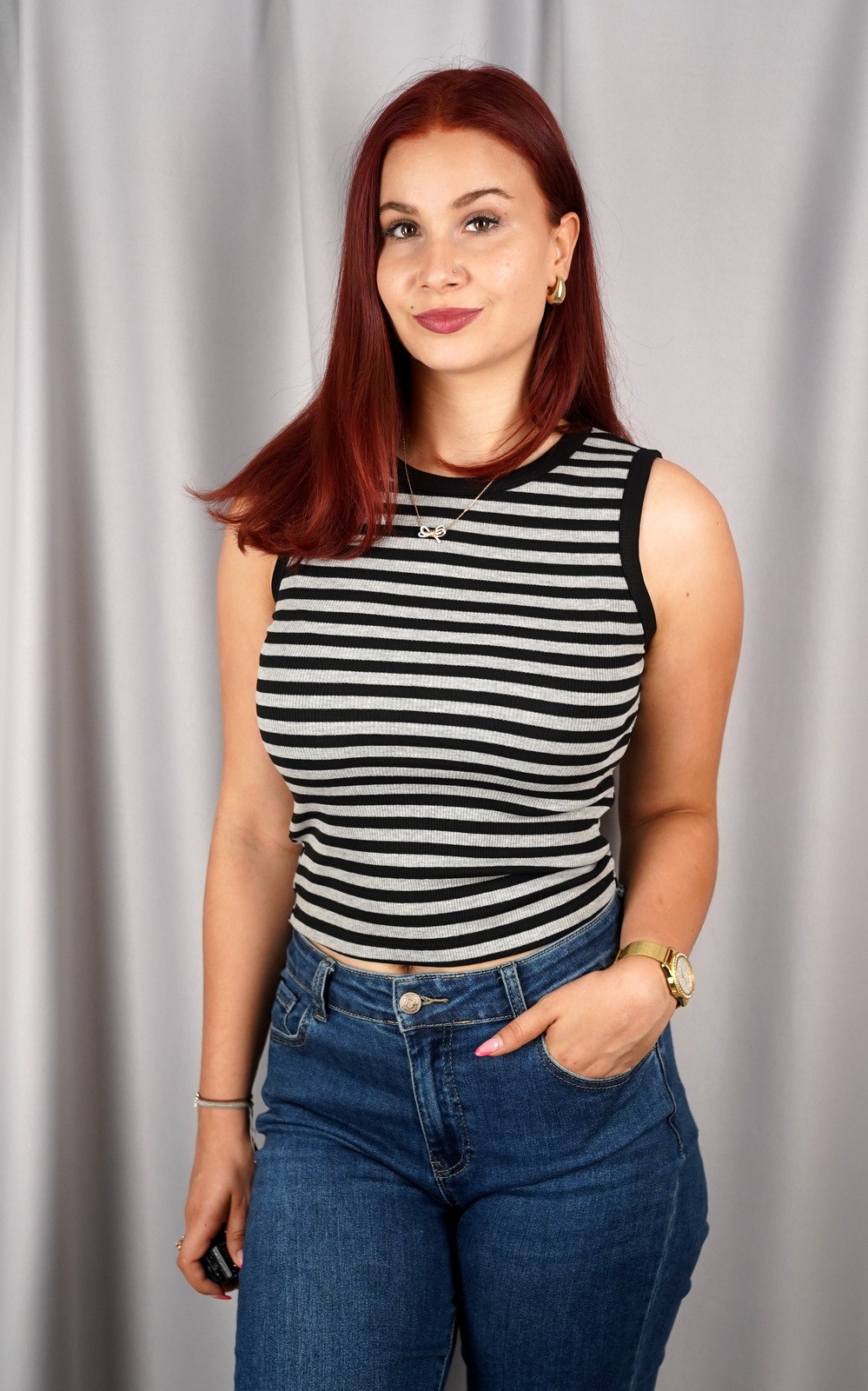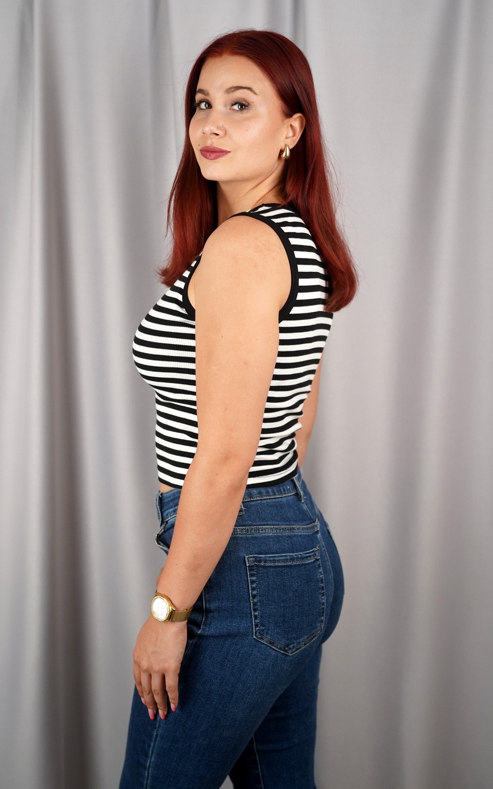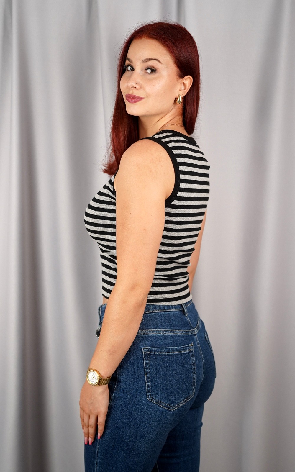 Ženska bezrukavna rebrasta majica crop kroja savršen je izbor za moderan i urban look. Izrađena od mekanog i rastezljivog materijala, odlično se prilagođava tijelu i naglašava figuru, dok kraći kroj čini ovaj model idealnim za kombinacije s hlačama ili suknjama visokog struka. Jednostavna, a opet efektna, ova majica je must-have komad u ormaru svake žene koja voli spoj udobnosti i stila. Može se nositi u casual prilikama, za šetnje gradom ili u večernjim izlascima kada želite postići mladenački i trendi izgled.